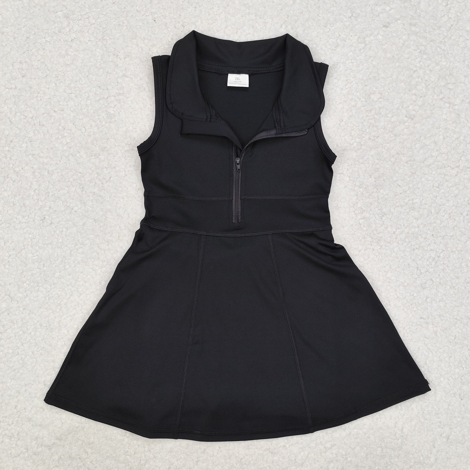 GSD1428 RTS NO MOQ Baby Girls Summer Yoga Dress Black sleeveless zipper athletic dress with shorts