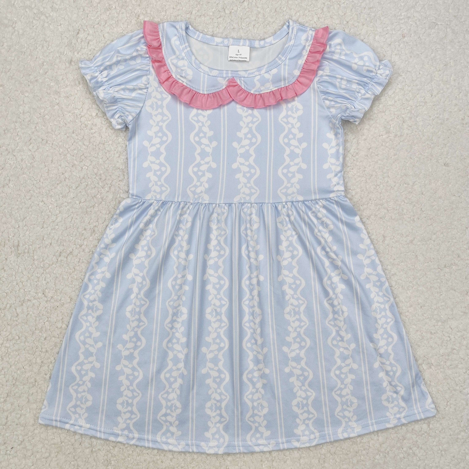 GSD1499 Striped pattern pink lace baby collar blue short-sleeved dress