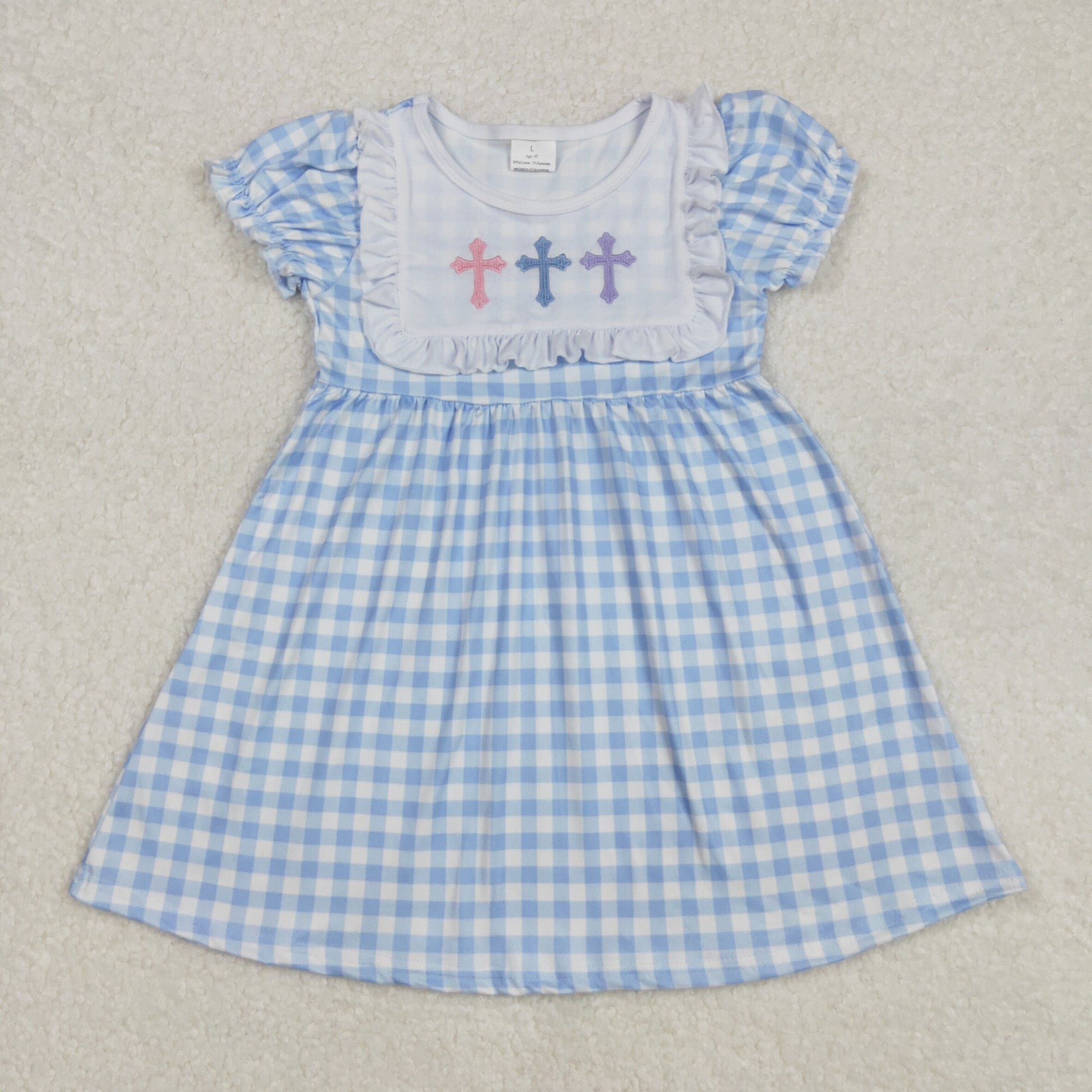 GSD1522Light Blue Plaid Cross Baby Girls Easter Dresses Spring Frock for Kids Birthday Party Outfit Toddler Girls Dress