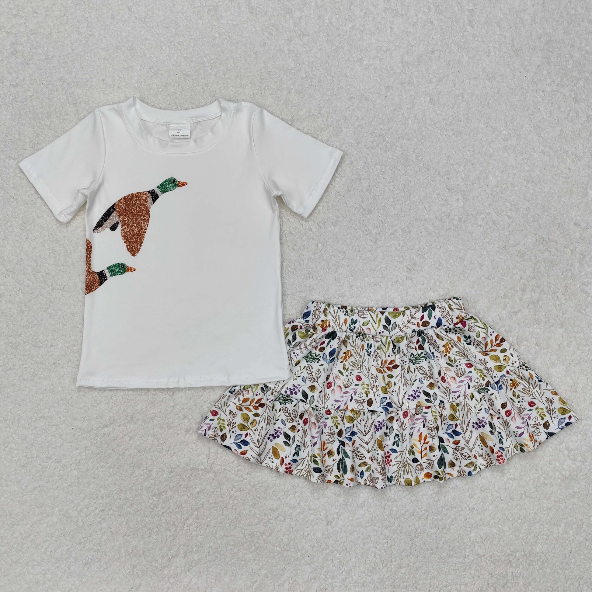 GSD1546Short sleeves duck top floral skirt kids girls clothes