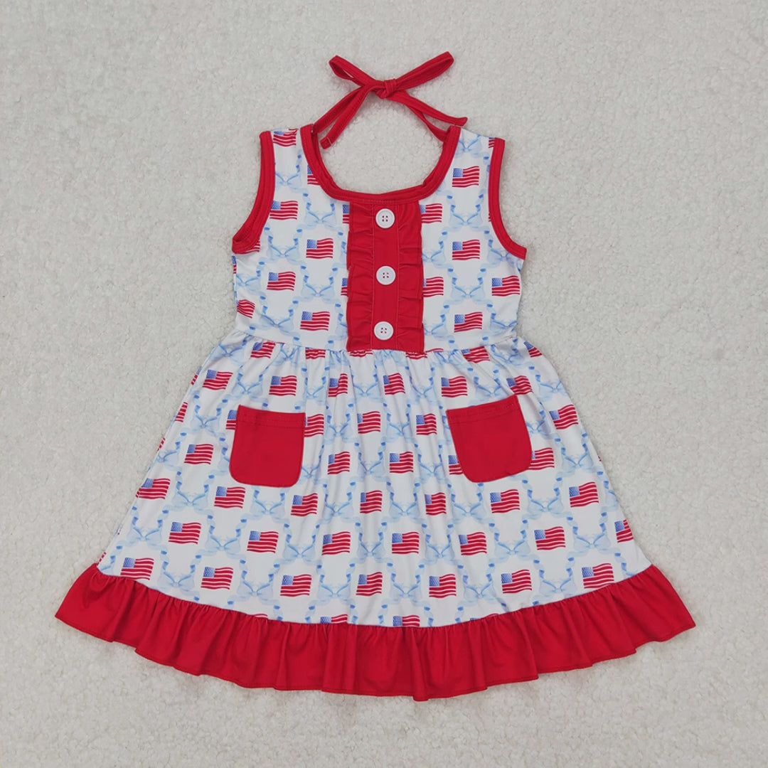 GSD1625 RTS NO MOQ Sleeveless bow flag baby girls 4th of july dresses