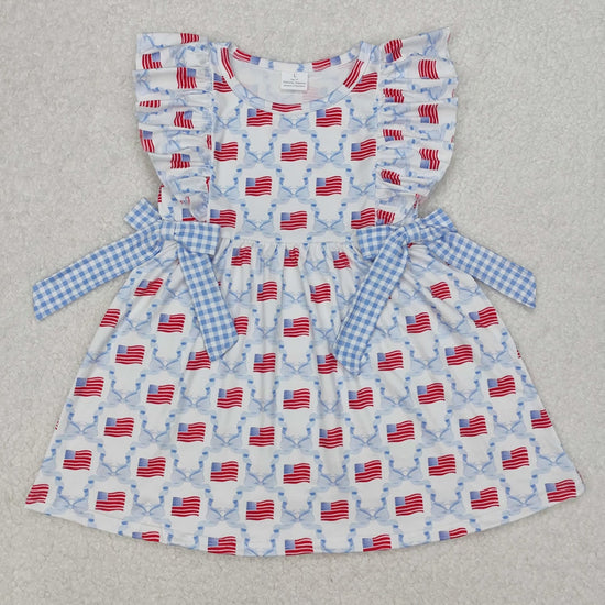GSD1641Light Blue Plaid Bow Flag 4th of July Dress for Kids Girls Cute Patriotic Plaid Skirt with Bow Detail