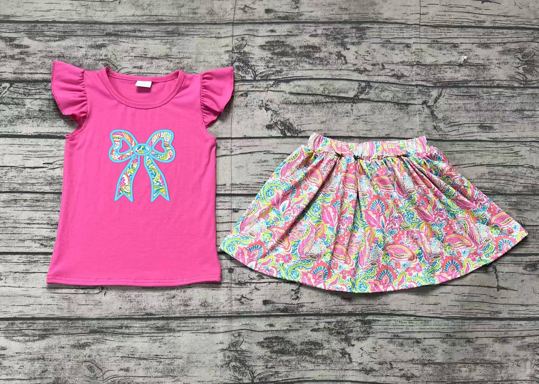 GSD1688Hot pink bow top watercolor floral skirt girls clothes