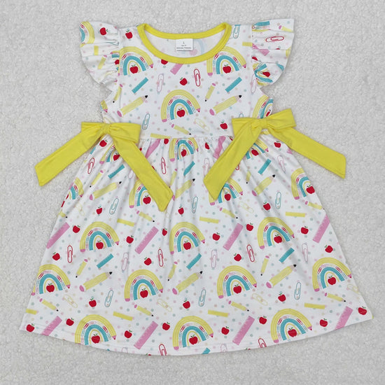 GSD1823Rainbow Girls Flutter Sleeve Apple Pencil Dress Cute Back to School Dress for Kids