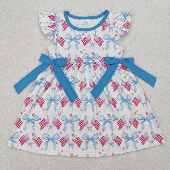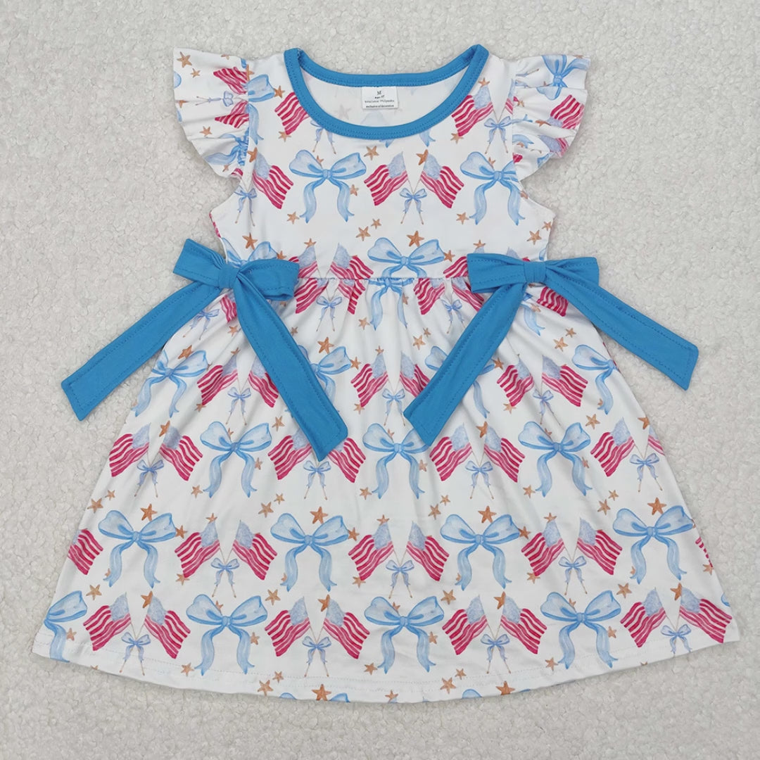 GSD1825 New Rts No Moq 8-9 Days By Air Arrived it Flutter sleeves flag bow stars girls 4th of july dresses