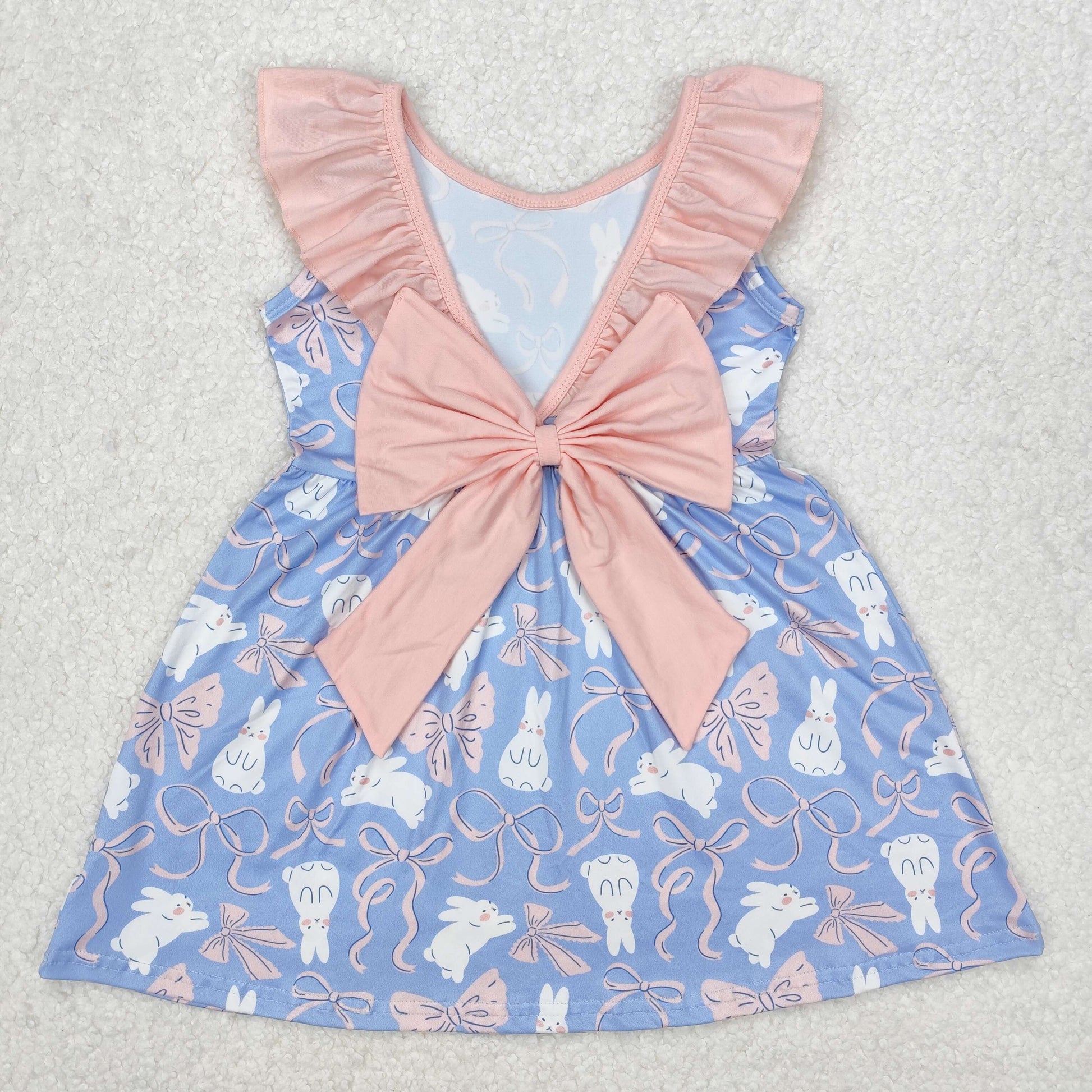 GSD1829Baby Girls Sleeveless Ruffle Rabbit Bow Dress Easter Outfit Cute Children's Clothing Spring Fashion for Little Girls