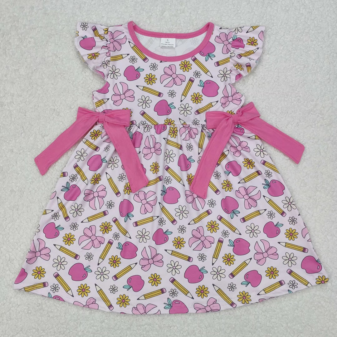GSD1846Girls Pink Flutter Sleeve Pencil Dress with Bow Back to School Cute Fashionable Kids Clothing