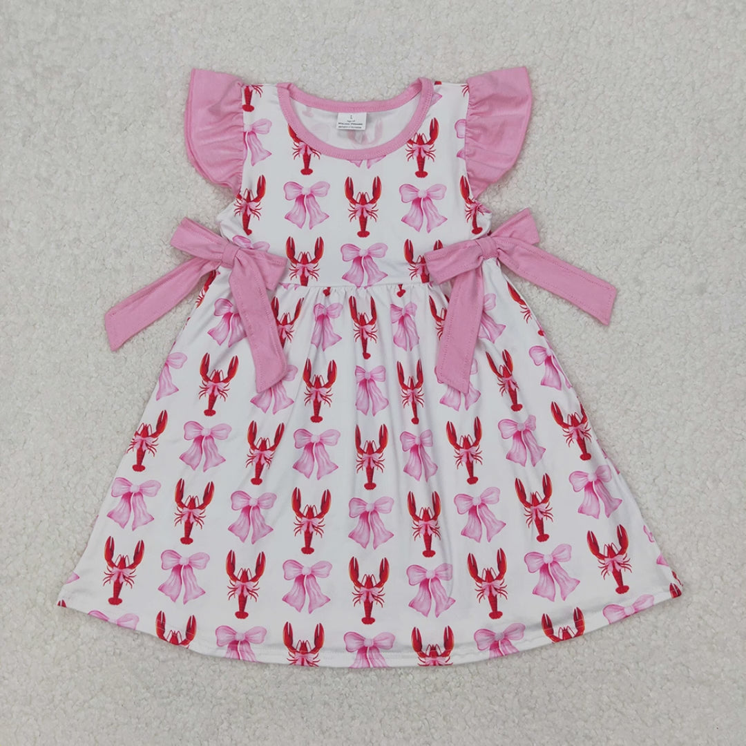 GSD1890 RTS NO MOQ Pink flutter sleeves bow crawfish baby girls dresses