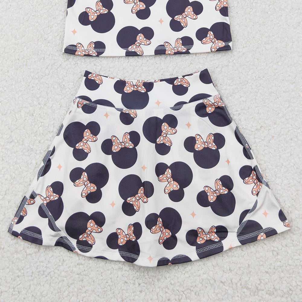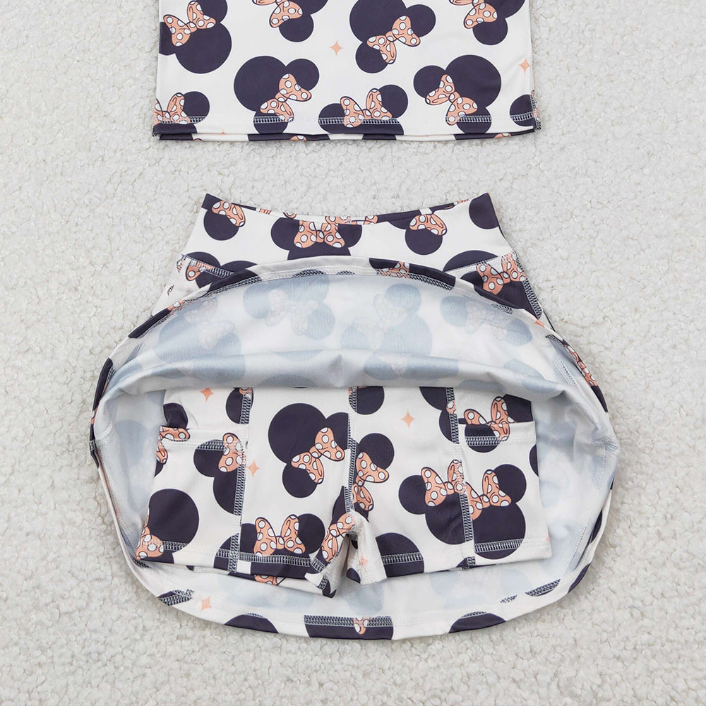 GSD1934RTS NO MOQ Baby Girls Yoga Outfits Baby Girls Cartoon Mouse Top Skort Clothes Sets
