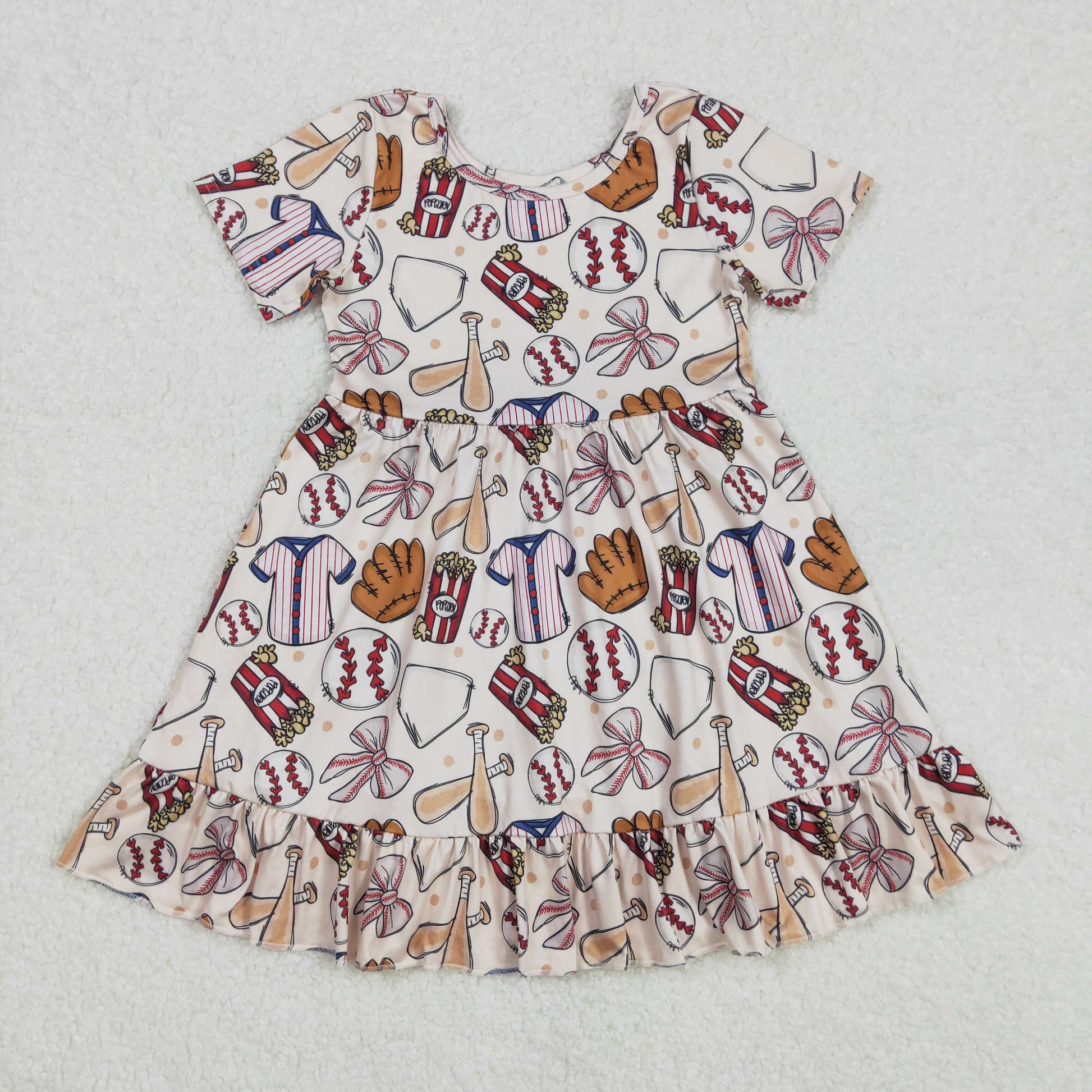 GSD1960Baby Girls Ruffle Dresses Short Sleeves Baseball Bow Cute Children's Clothing for Girls