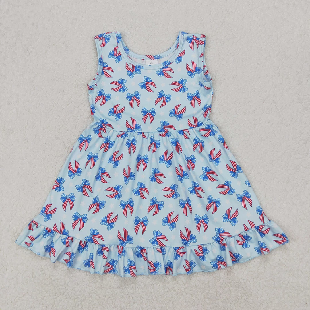 GSD1965 New Rts No Moq 8-9 Days By Air Arrived it Sleeveless blue stars stripe bows baby girls 4th of july dress