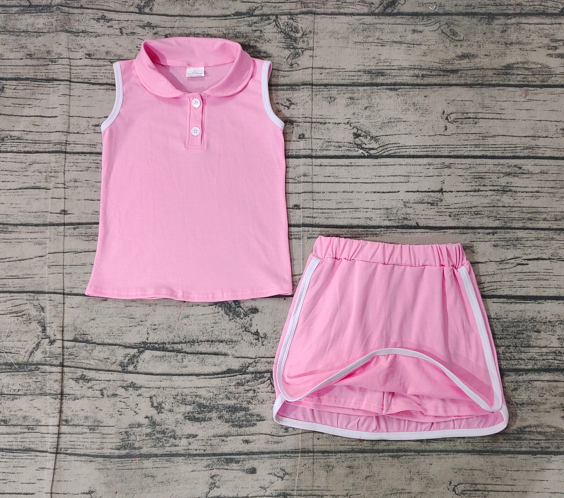 GSD1975Pink Cotton Sleeveless Polo Shirt Skirt Set for Girls Kids' Matching Clothing Outfit
