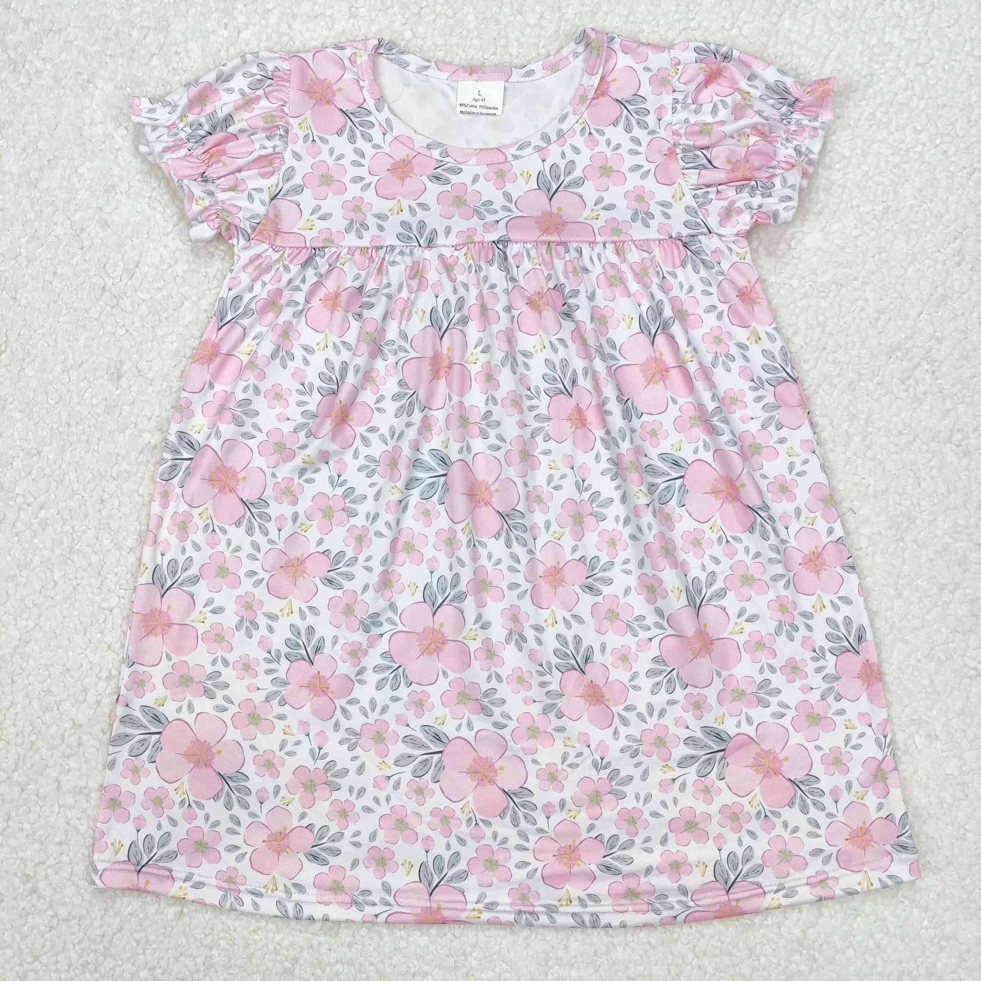 GSD2026Kids Girls Short Sleeve Pink Floral Dress Spring Summer Cute Children's Fashion Lightweight Dress for Girls