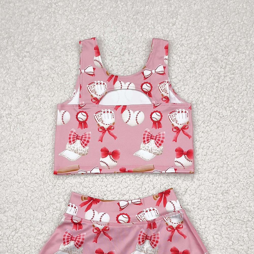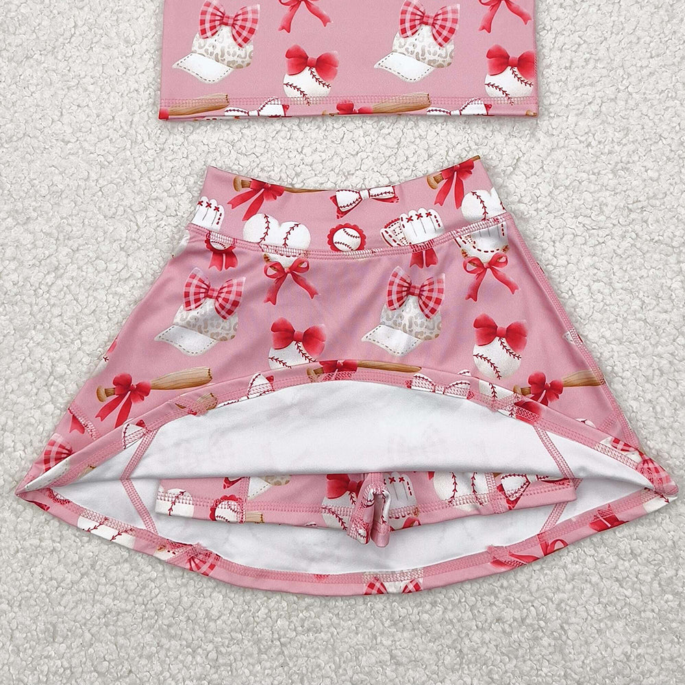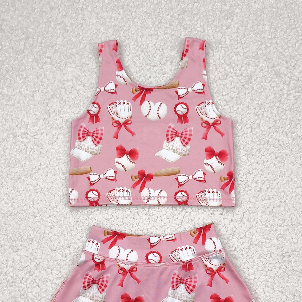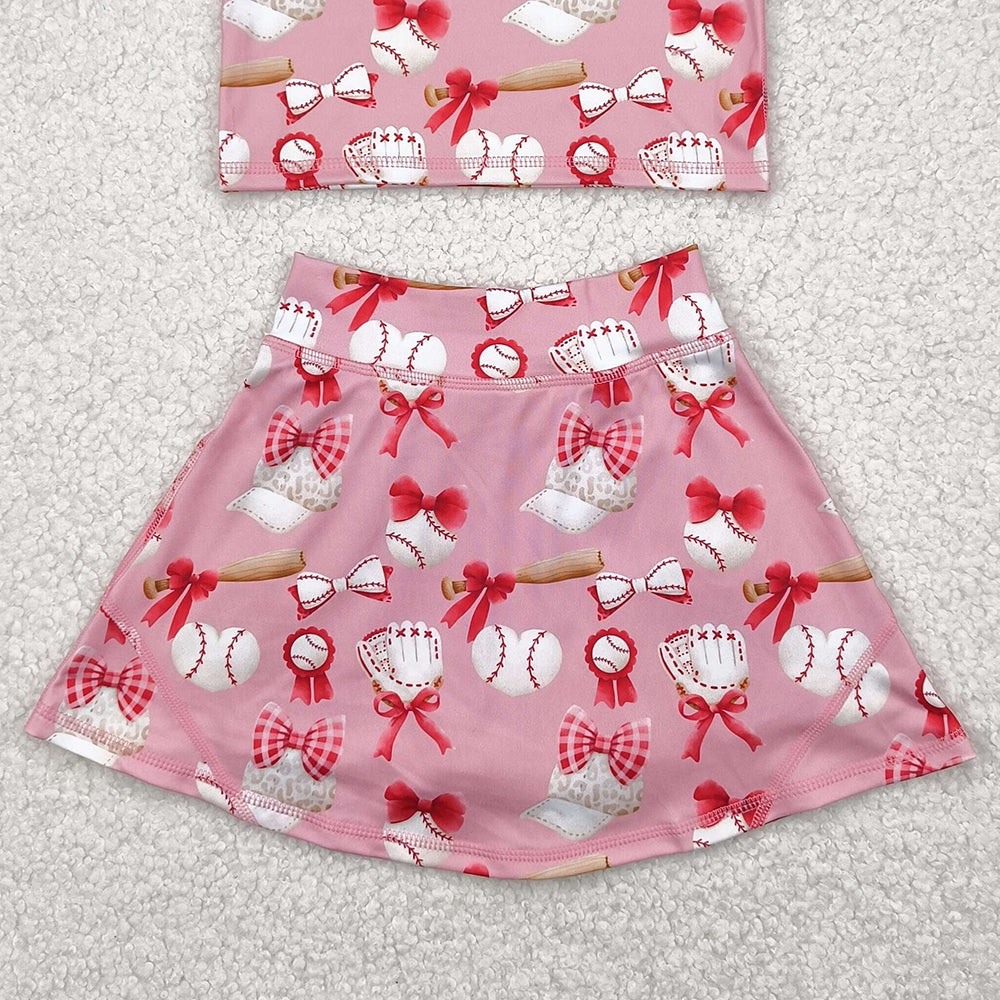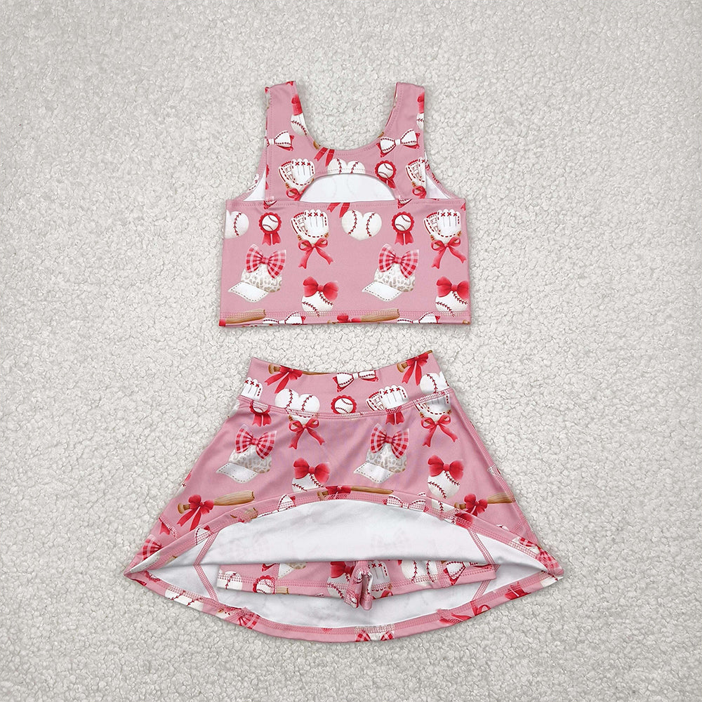 GSD2044RTS NO MOQ Baby Girls Yoga Outfits Girls Sleeveless Heart Baseball Top Skirt Active Wear Set Cute Sportswear Outfit for Kids