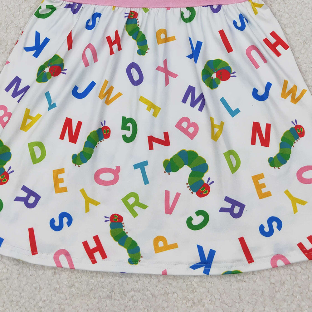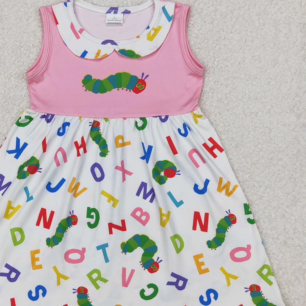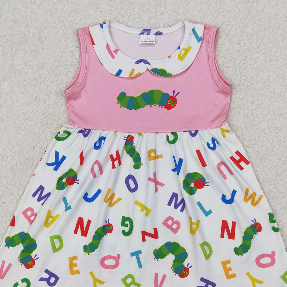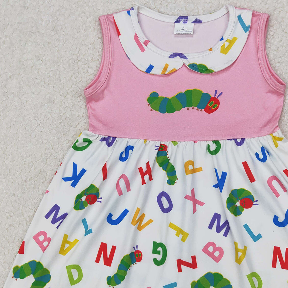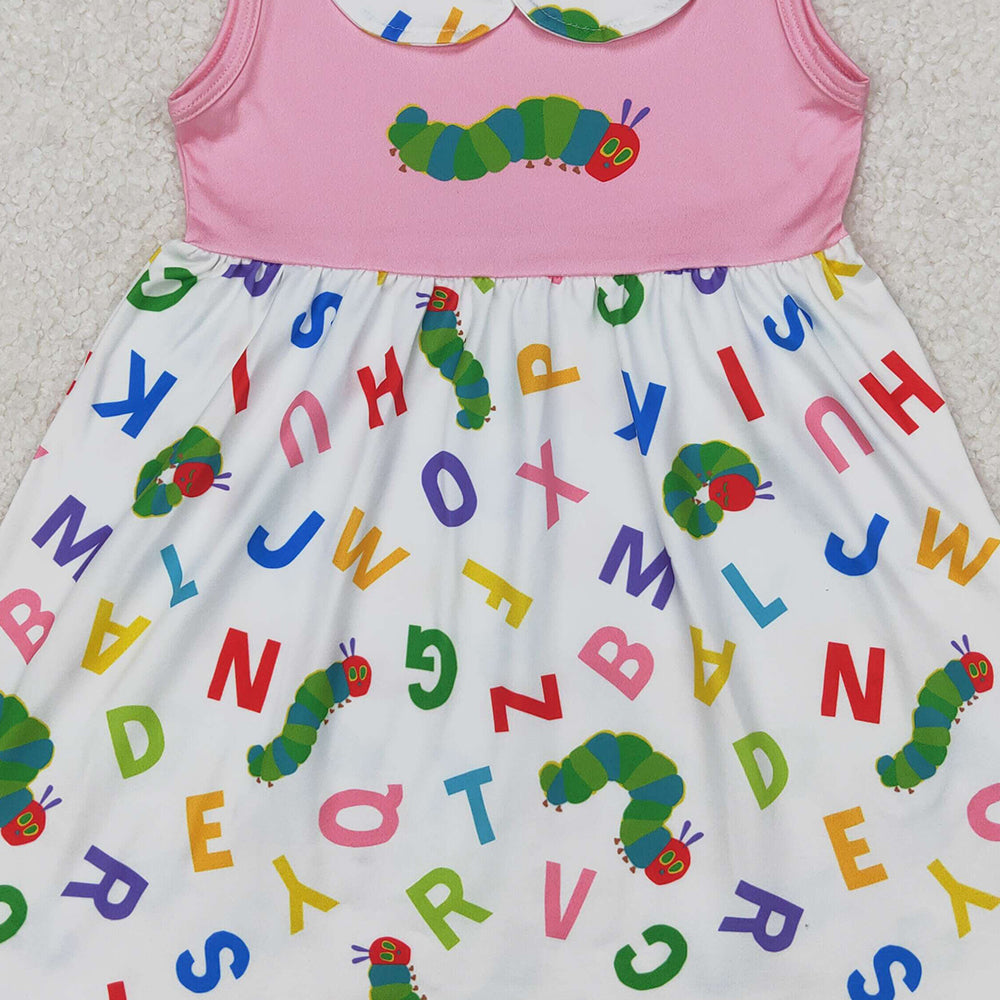 4.09 GSD2152 RTS NO MOQ Baby Girls Summer Dress Baby Girls Pink Sleeveless Letters Caterpillar Dress