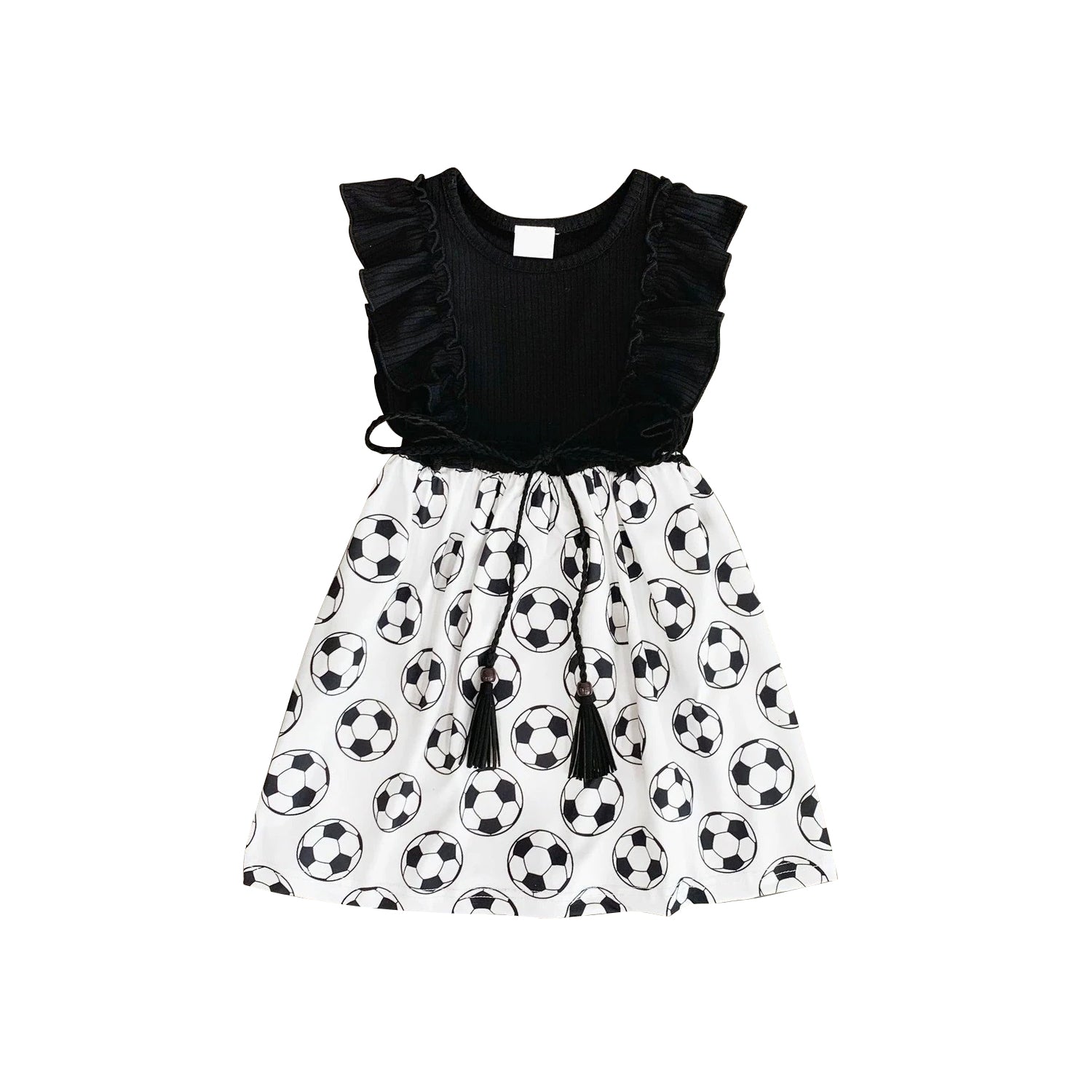 GSD2174Kids Girls Black Ruffle Soccer Dress Summer Casual Short Sleeve Dresses for Girls