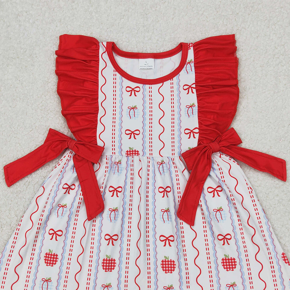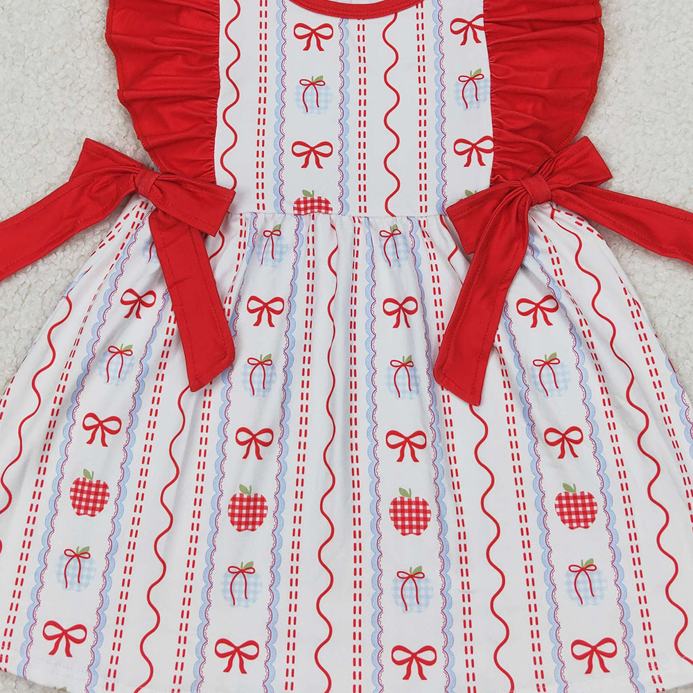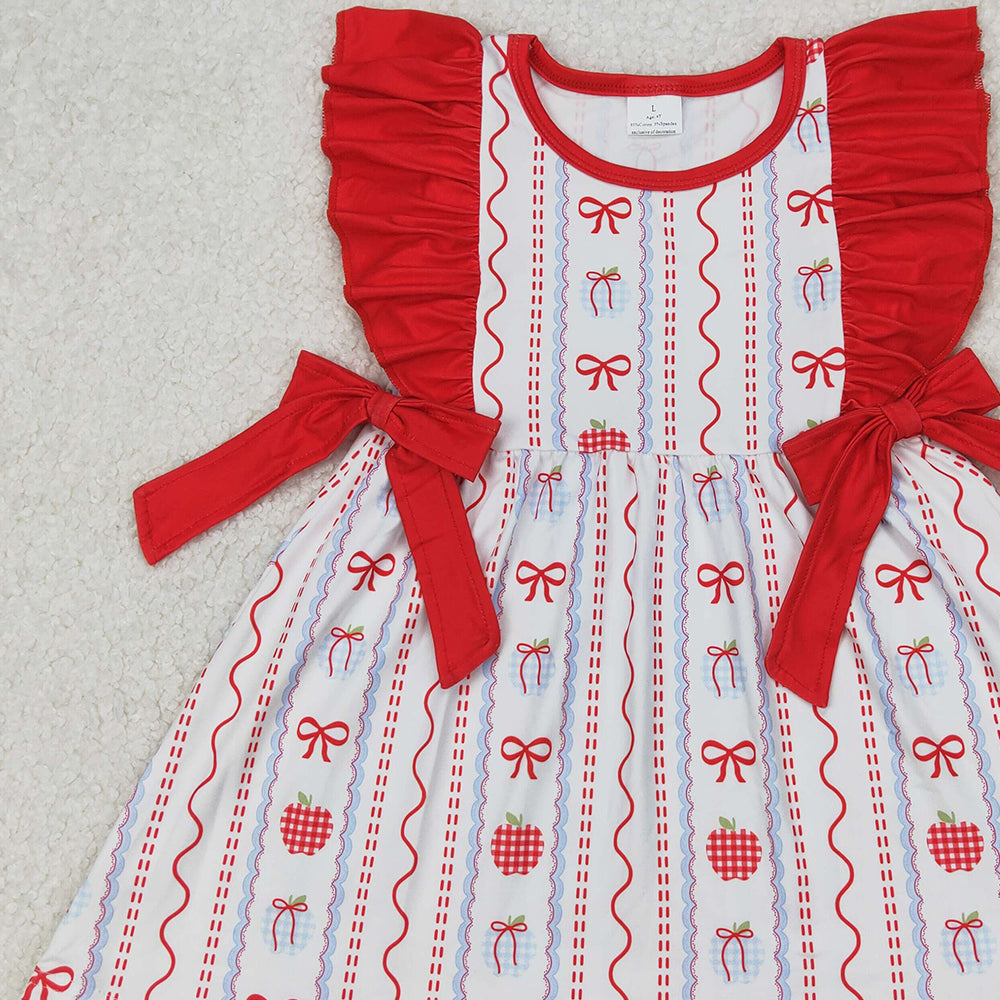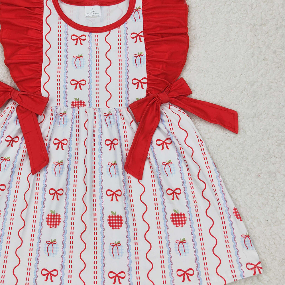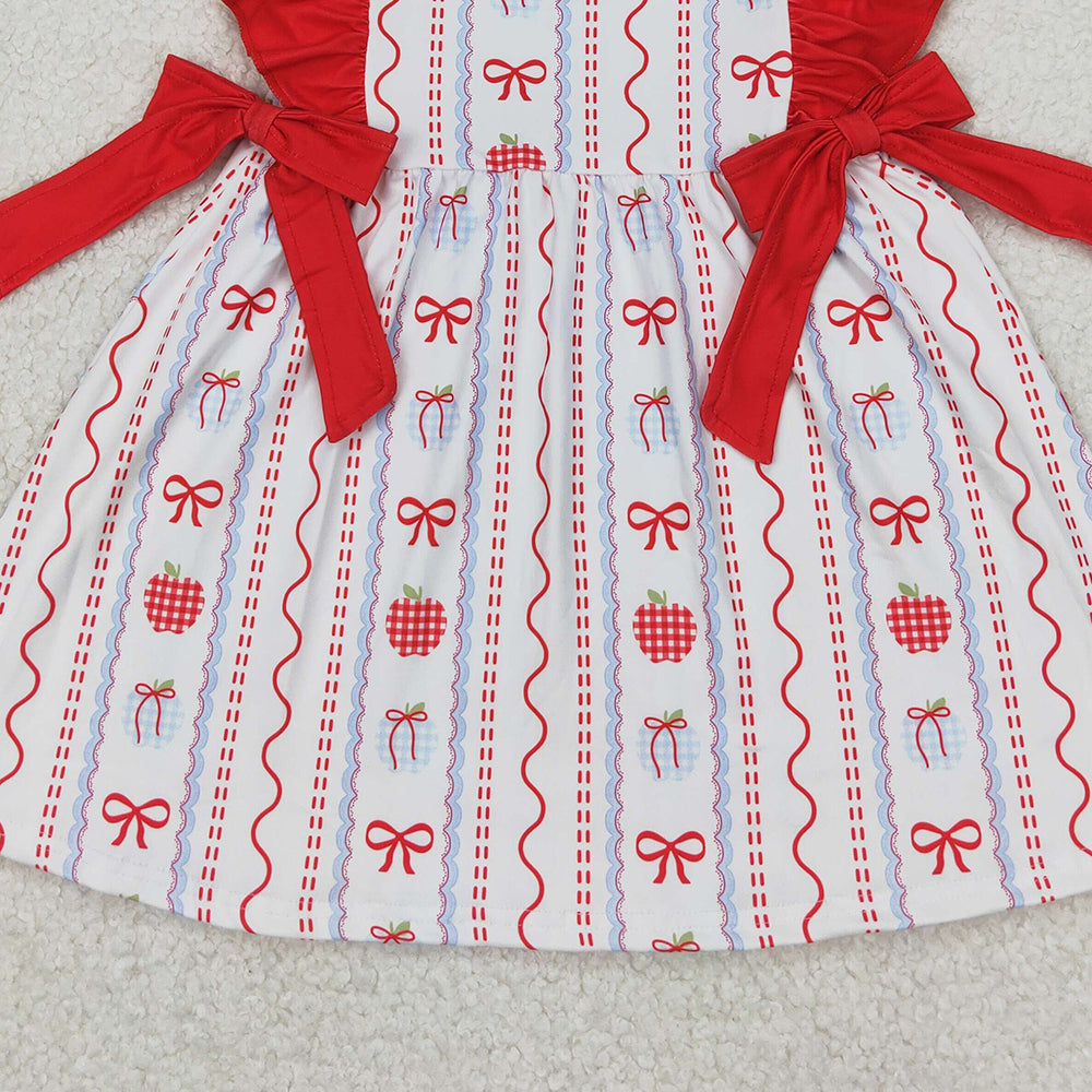 4.07 GSD2201 RTS NO MOQ Baby Girls Summer Dress Red ruffle apple bow girls back to school dresses
