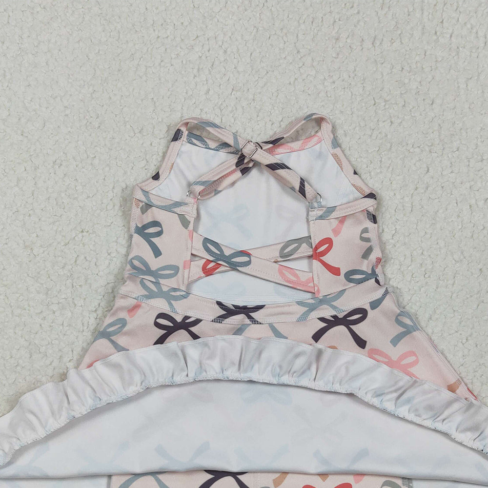 7.15 GSD2296RTS NO MOQ Baby Girls Summer Yoga Dress Baby Girls Active Wear Colorful Bow Yoga Dress