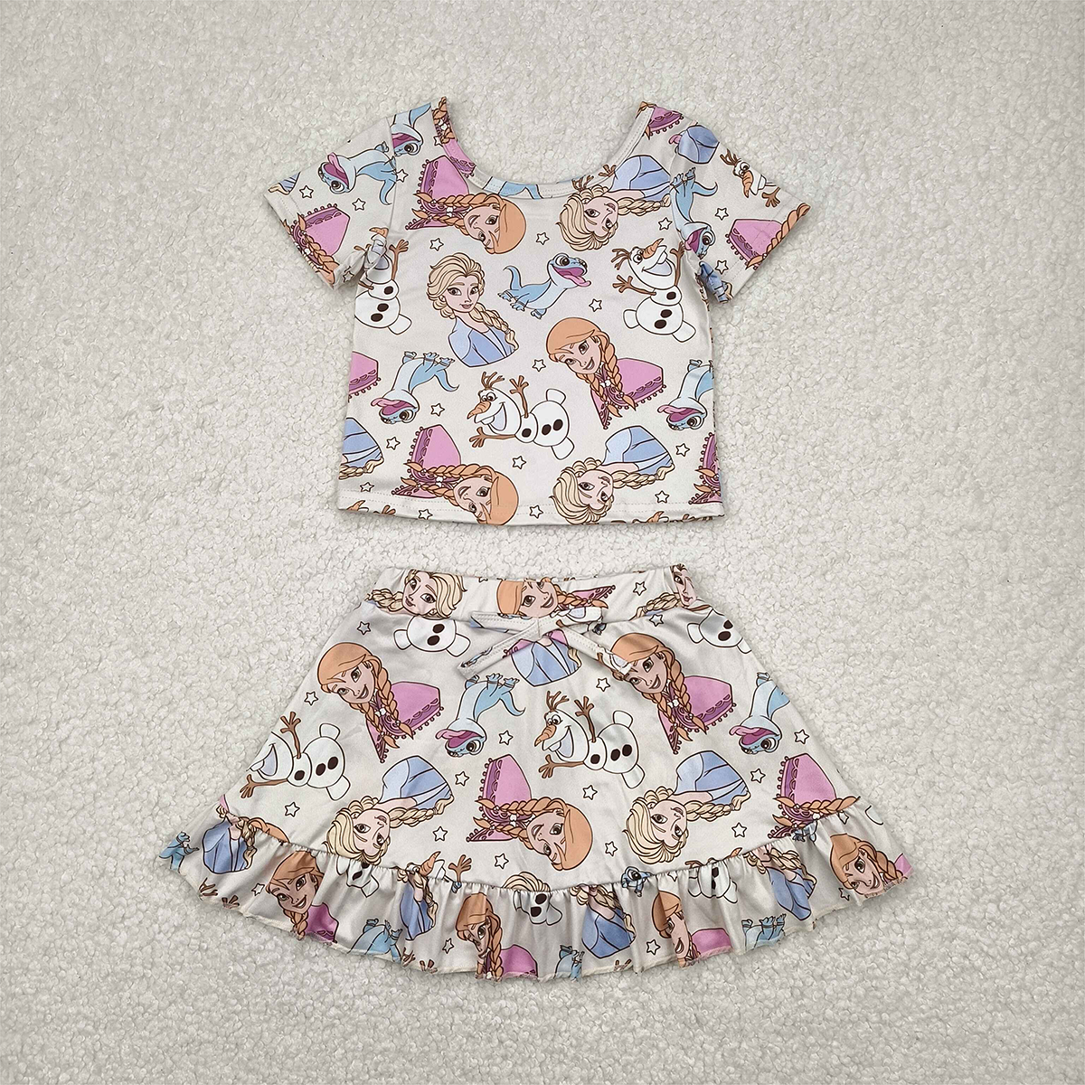 6.10 GSD2358 RTS NO MOQ Baby Girls Skirt Sets Short sleeves snow top skirt princess girls clothes