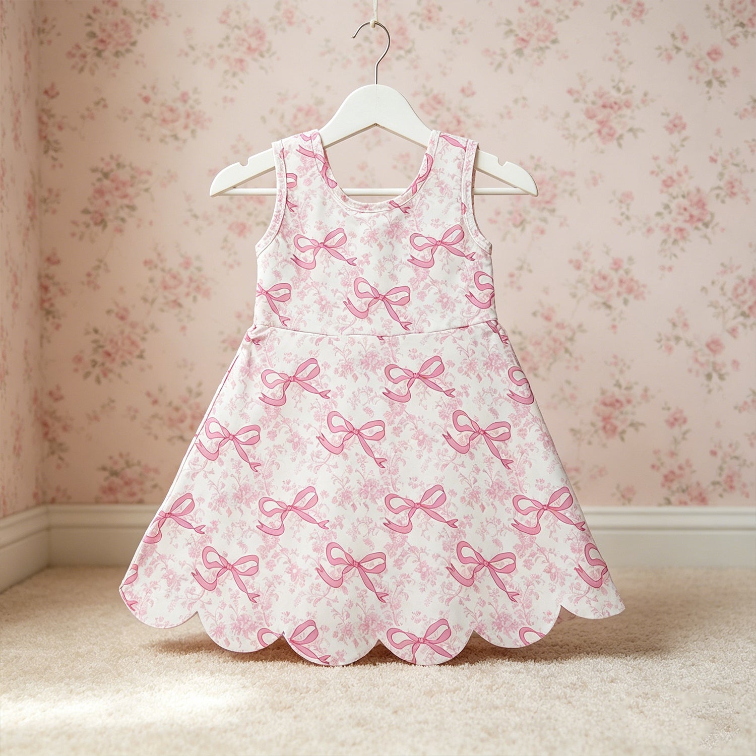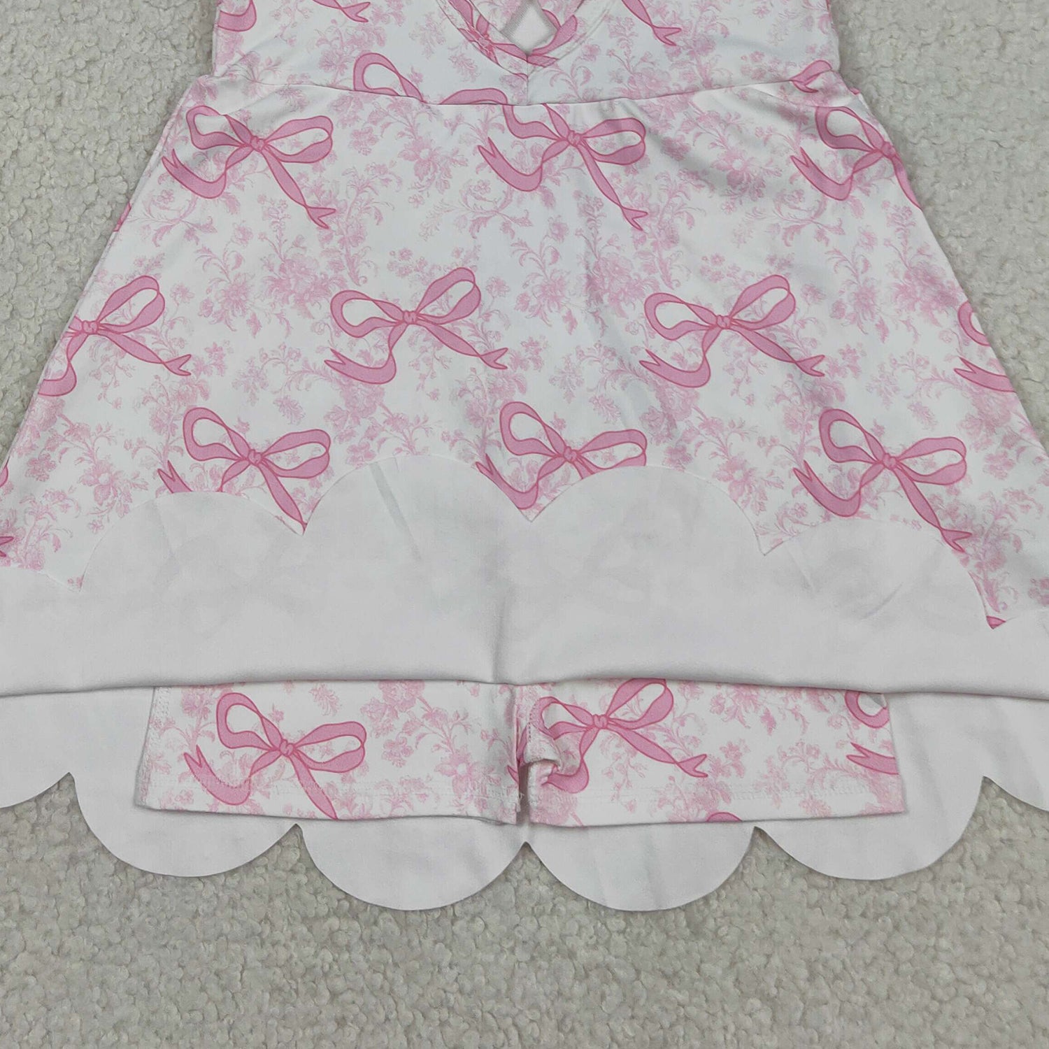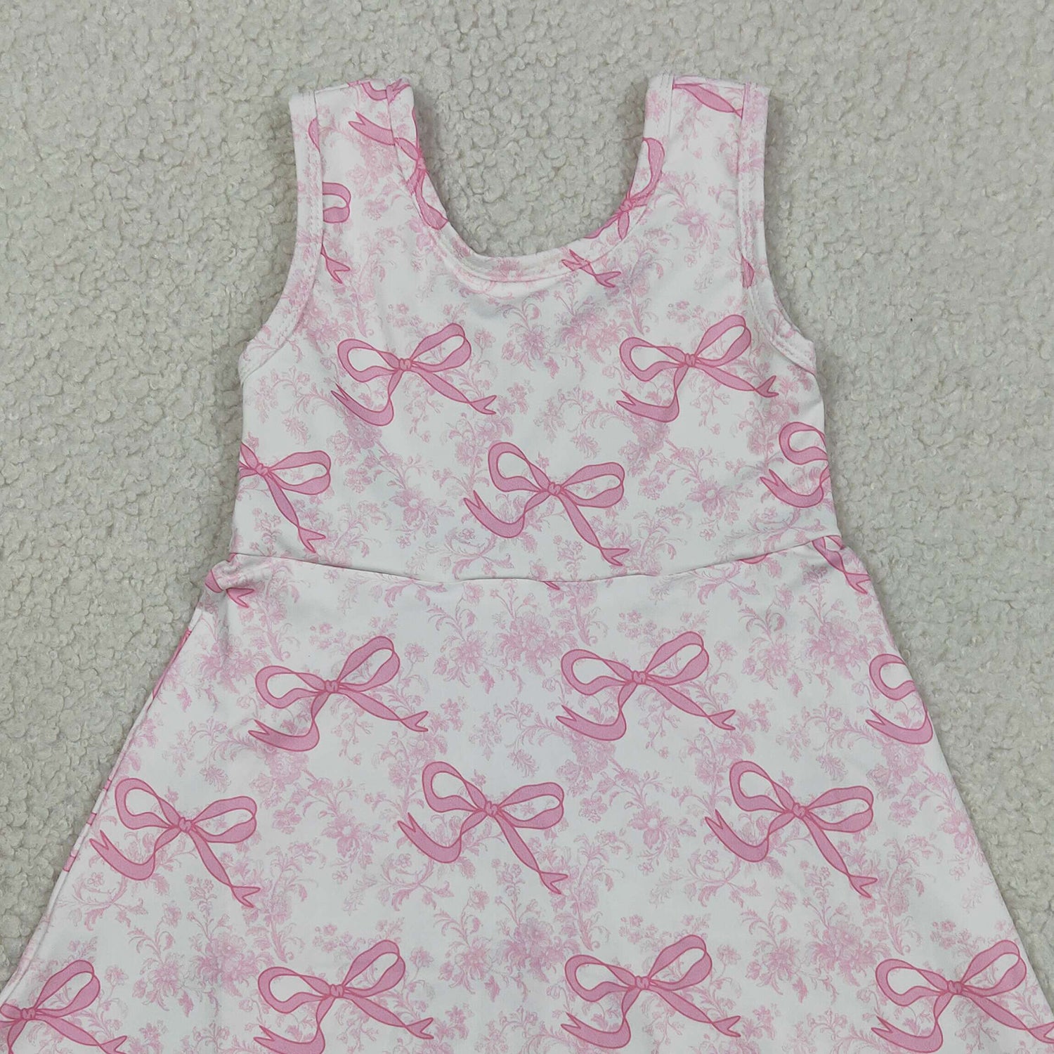 GSD2572 RTS NO MOQ (In stock )Sleeveless floral pink bow girls summer athletic dress