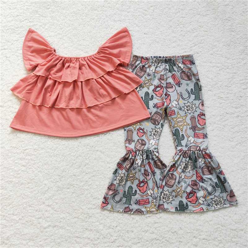 GSPO0293 Girls wildwest bull head cactus one shoulder trouser suit
