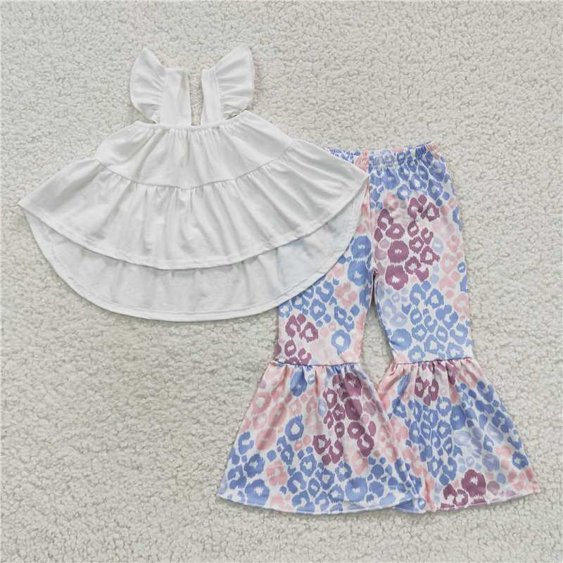 GSPO0678 White sleeveless camisole top and leopard print trousers set