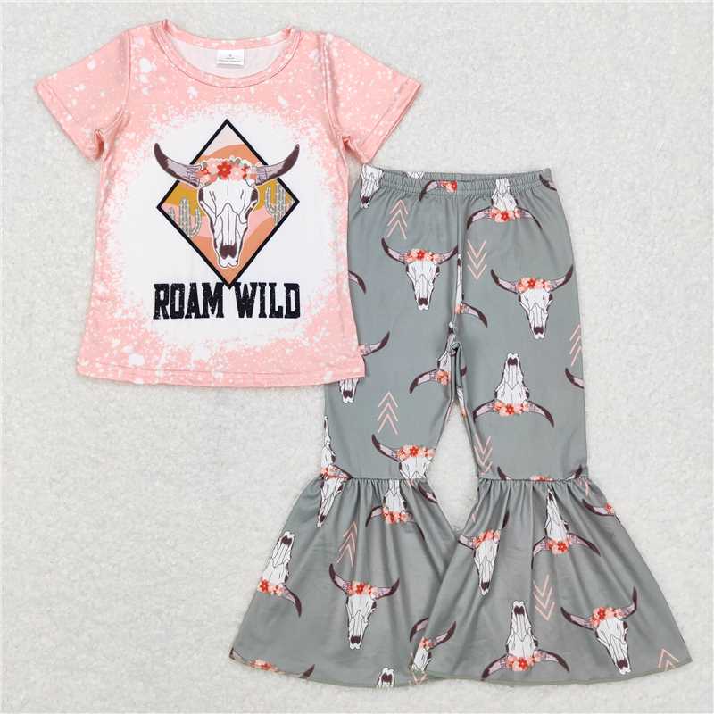 GSPO0914 roam wild alpine bull head pink green short-sleeved trousers suit