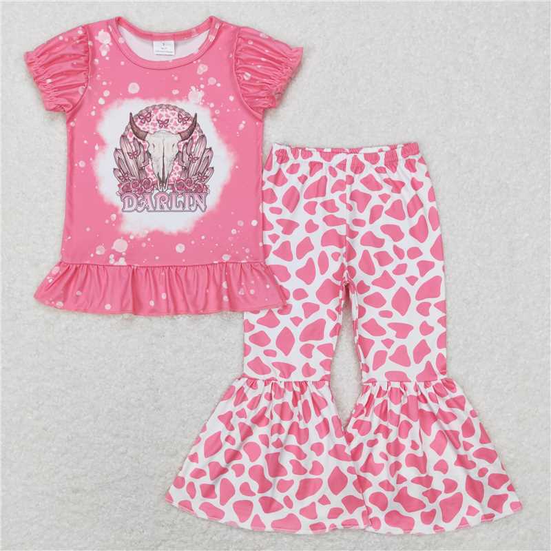 GSPO1052 darlin cactus bull head pink lace short-sleeved leopard print trousers suit