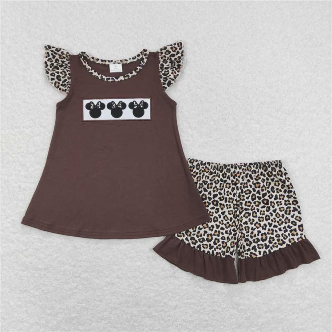 GSSO0424 New Rts No Moq 8-9 Days By Air Arrived it Brown mouse top leopard shorts girls summer clothing
