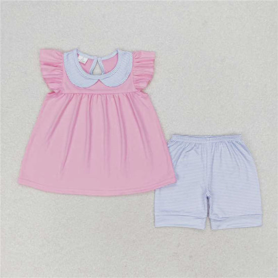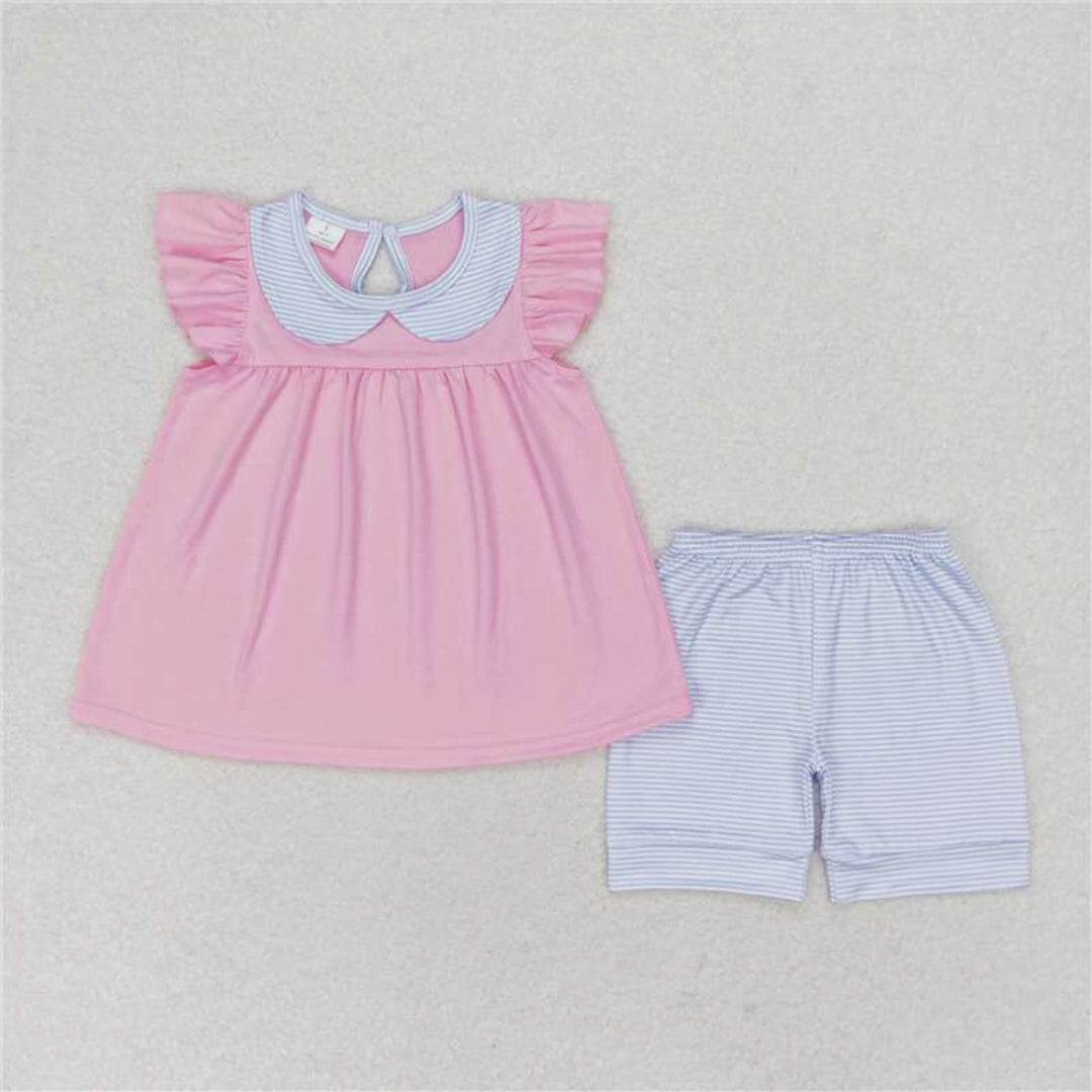GSSO1064 New Rts No Moq 8-9 Days By Air Arrived it Pink flutter sleeves tunic stripe shorts girls summer outfits