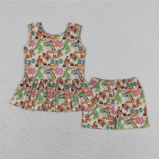 GSSO1275 New Rts No Moq 8-9 Days By Air Arrived it Sleeveless pig dinosaur toy peplum shorts girls clothes
