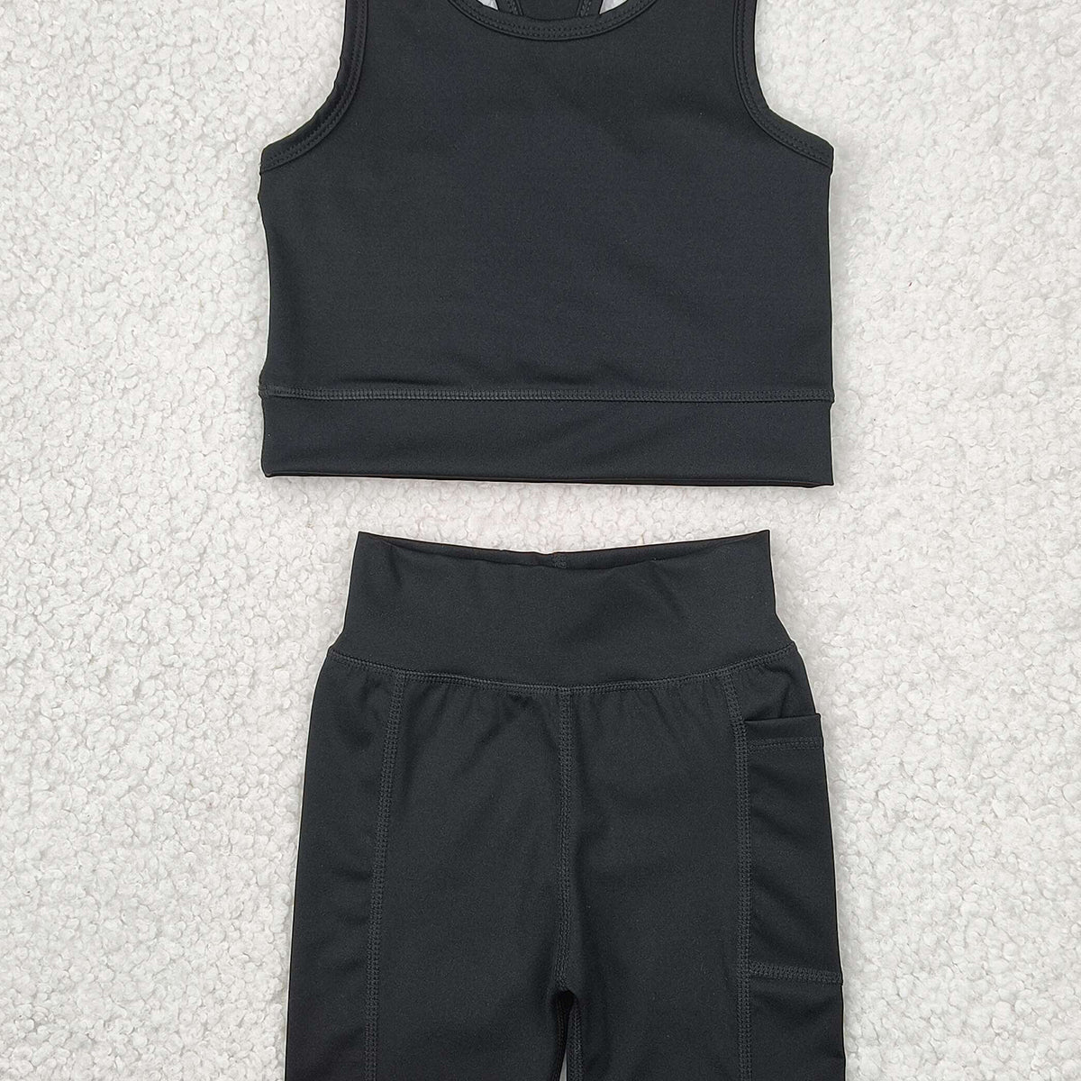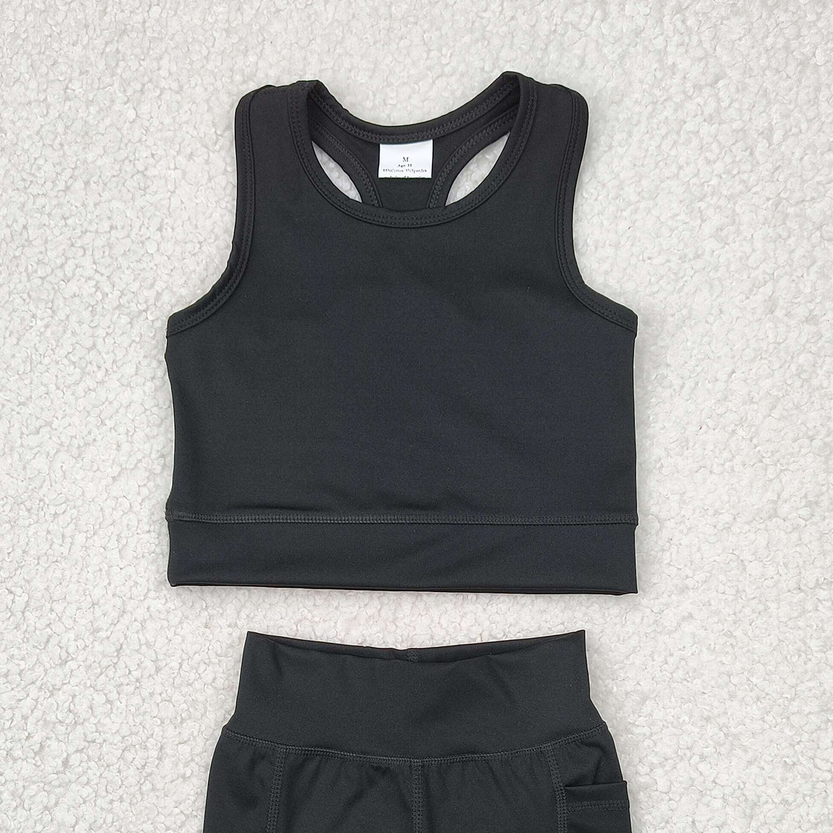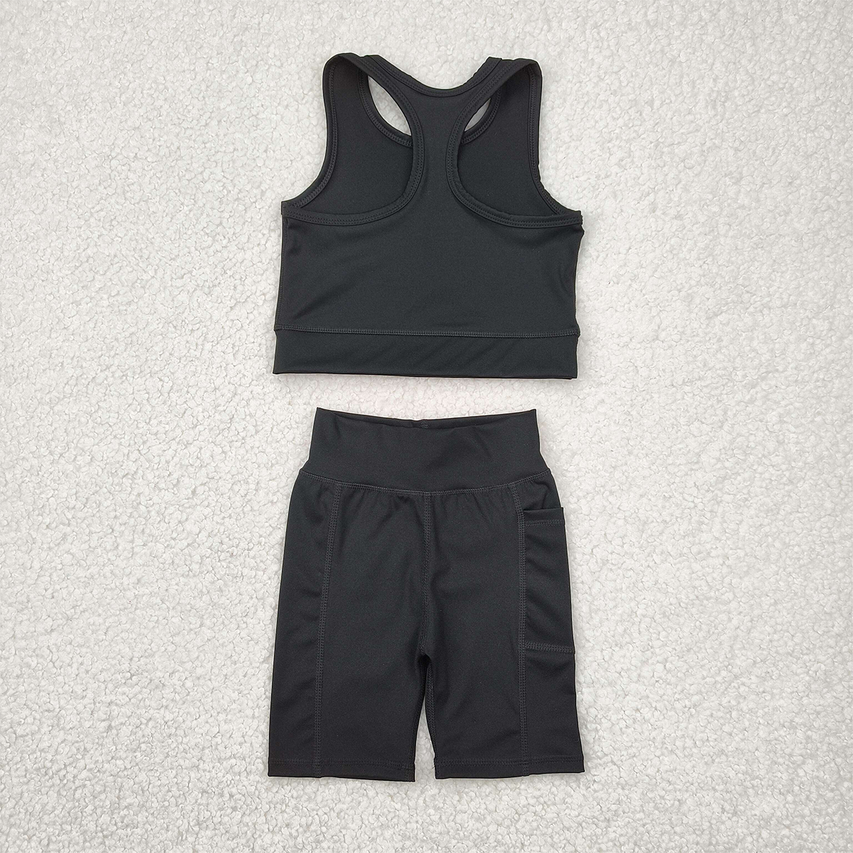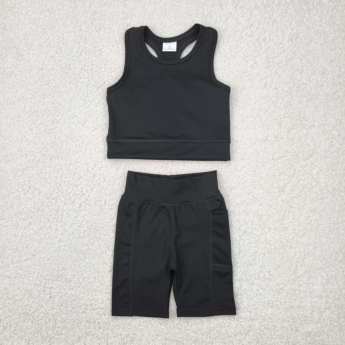 6.04 GSSO1517 RTS NO MOQ Baby Girls Yoga Outfits Black straps top shorts girls summer yoga clothes