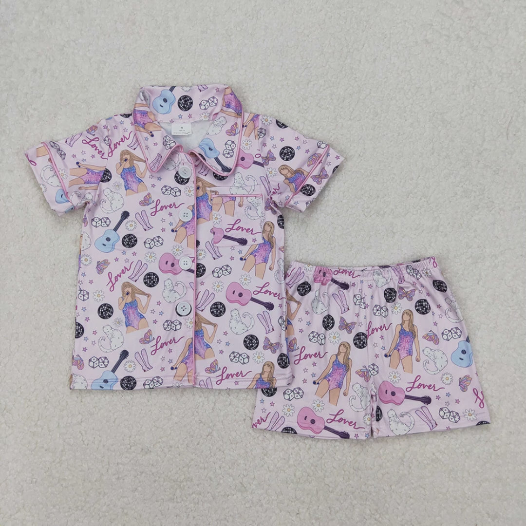 GSSO1773 New Rts No Moq 8-9 Days By Air Arrived it Short sleeves guitar boots singer girls button down pajamas