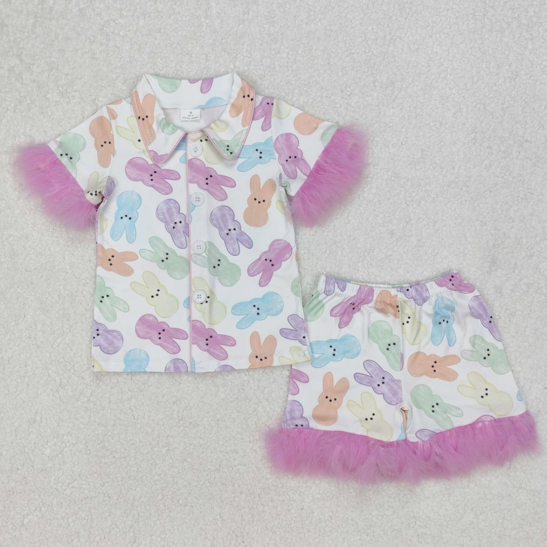 GSSO2020Girls Colorful Bunny Fur Pajamas Button down Easter Sleepwear Comfortable Soft Polyester Nightgown for Kids