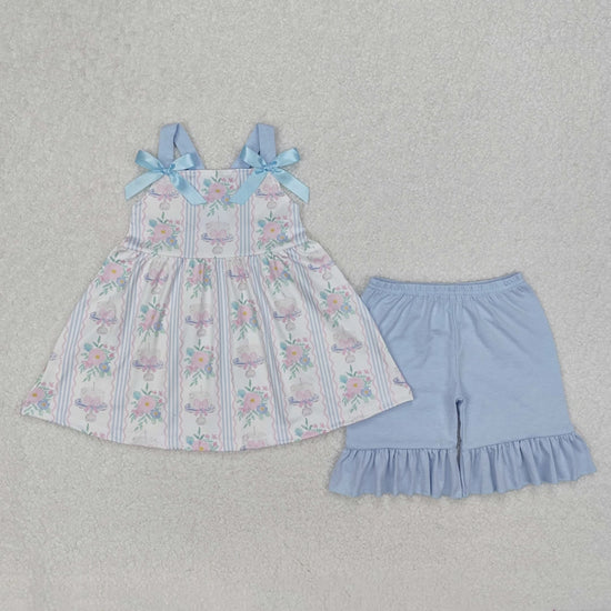 GSSO2087Light Blue Straps Floral Cake Bow Girls Birthday Clothes Cute Feminine Design for Children's Party Outfit