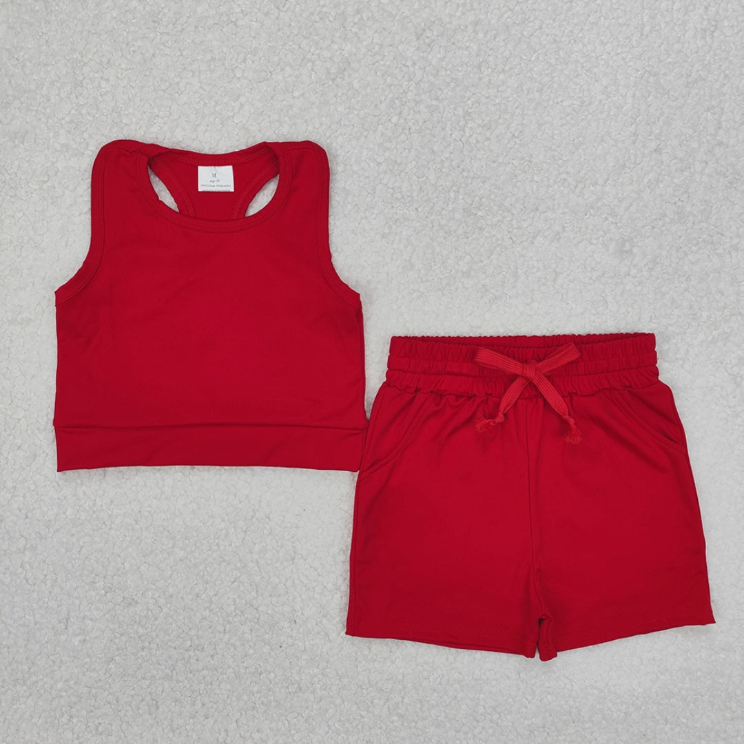 GSSO2131New Rts No Moq 8-9 Days By Air Arrived it Sleeveless red top pockets shorts girls active wear clothes