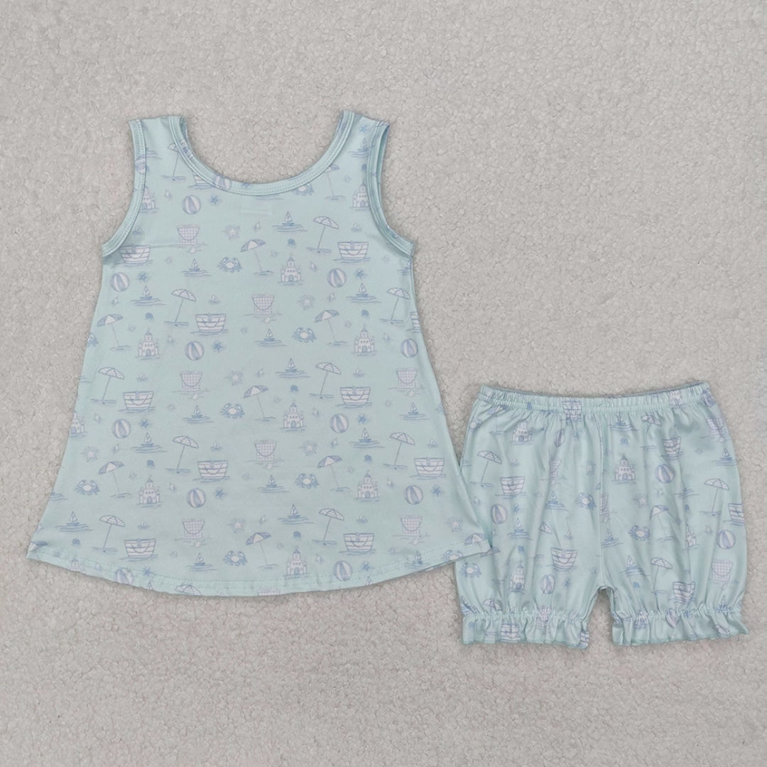 GSSO2224 New Rts No Moq 8-9 Days By Air Arrived it Sleeveless light blue crab castle beach ball girls clothes