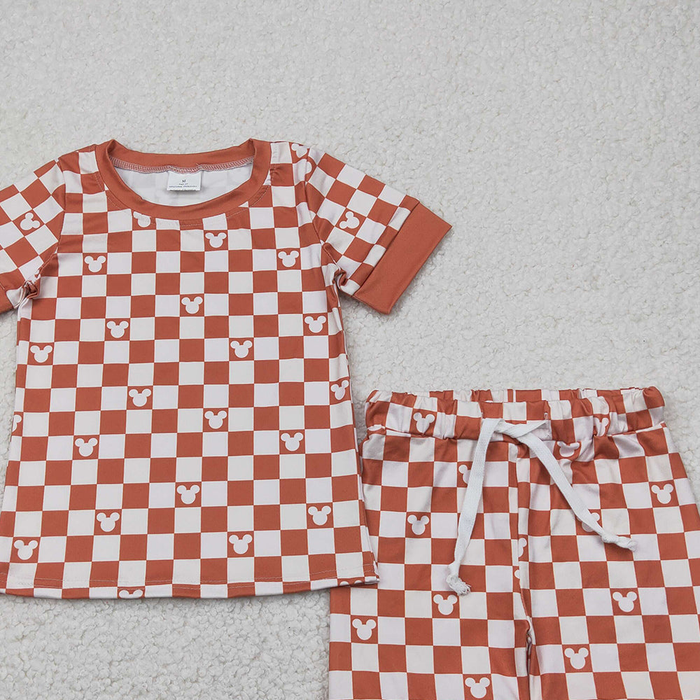 6.13 GSSO2232 RTS NO MOQ Baby Girls Summer Outfits Khaki Cartoon Mouse Top Tee Shorts Clothes Sets
