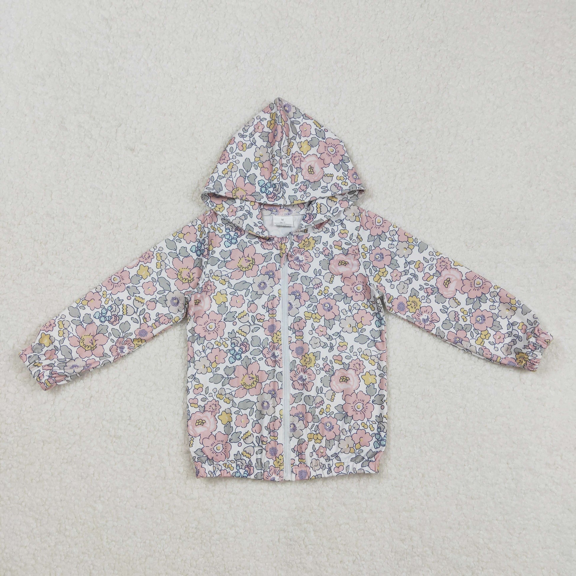 GT0914Pink Floral Long Sleeve Zip Jacket for Baby Girls Cute Floral Print Zipper Front Casual Outerwear