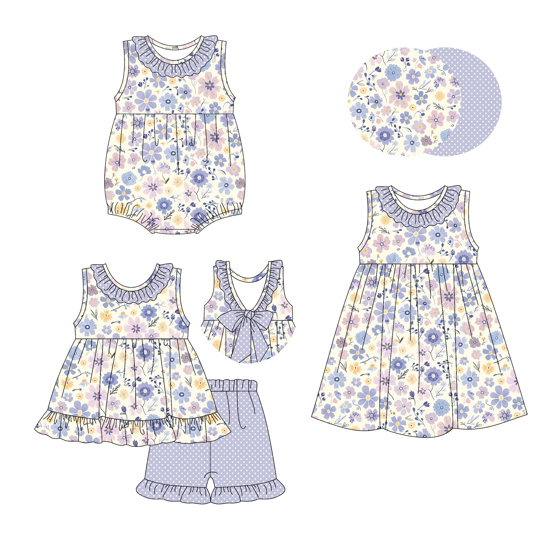Girls Polka Dots Ruffle Floral Tunic Short Outfit Set Cute Spring Summer Children's Clothing Set for Kids