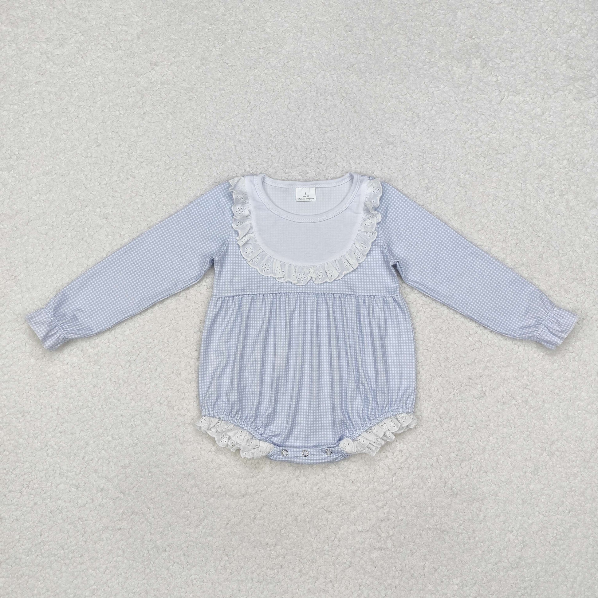 LR0986 Baby Infant Toddler Girls Blue Bib Long Sleeve Rompers