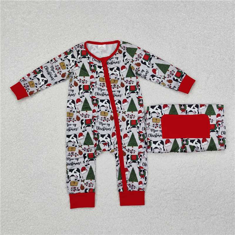LR1075 Christmas tree cow gray and red zipper long sleeve jumpsuit