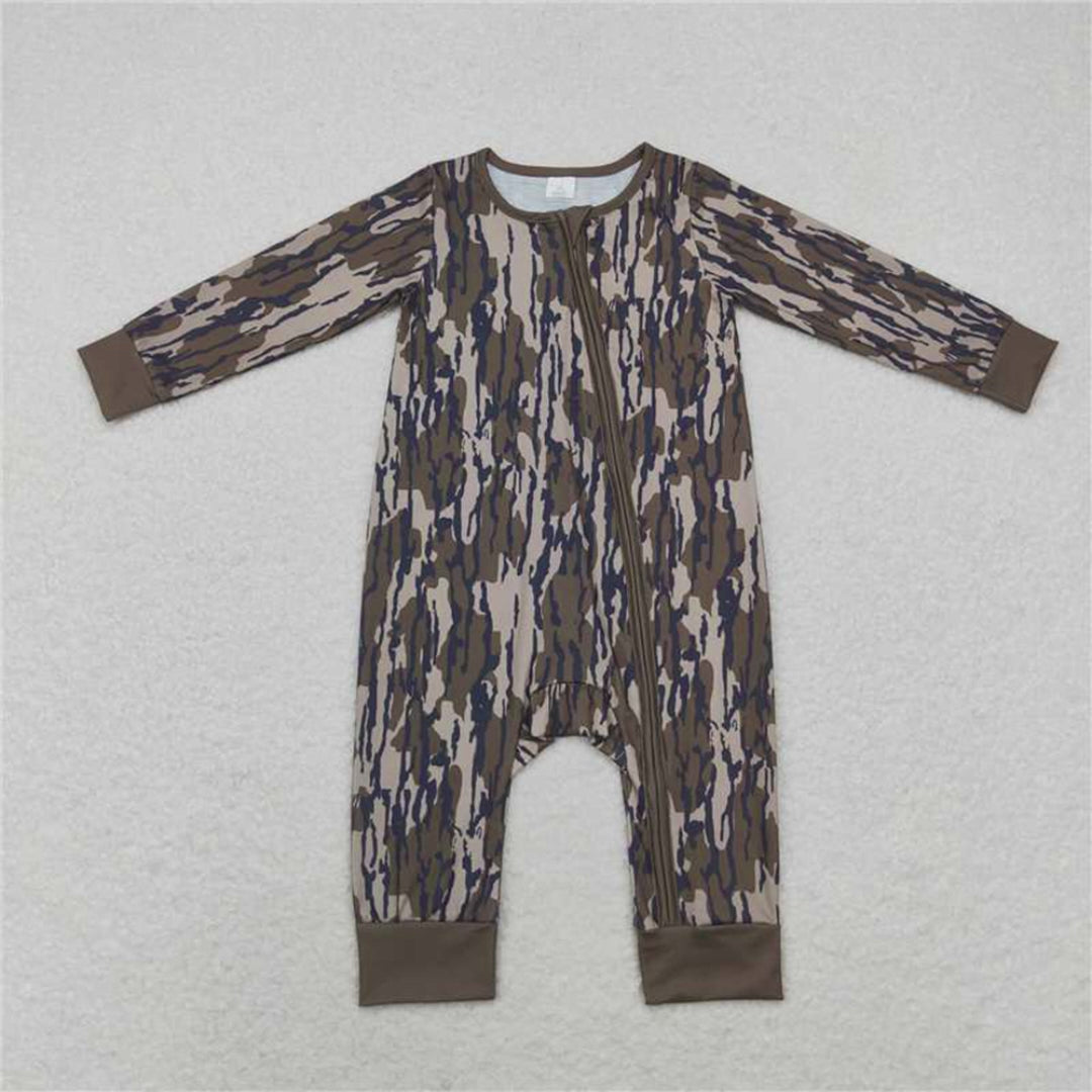 USA Shop (in stock)LR1452 Long sleeves bottomland camo baby kids zipper romper