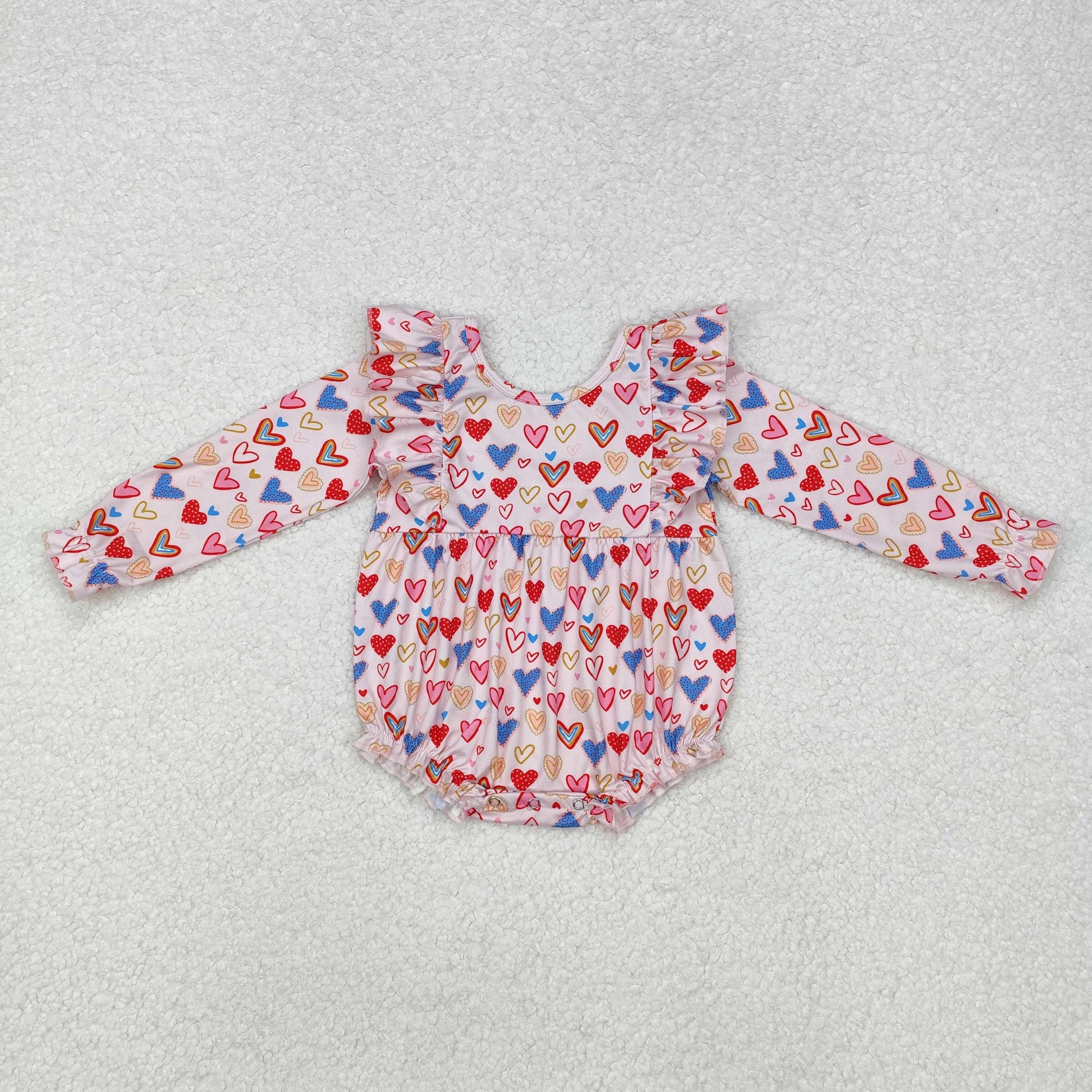 LR1917 Long sleeves heart baby girls valentine's day romper