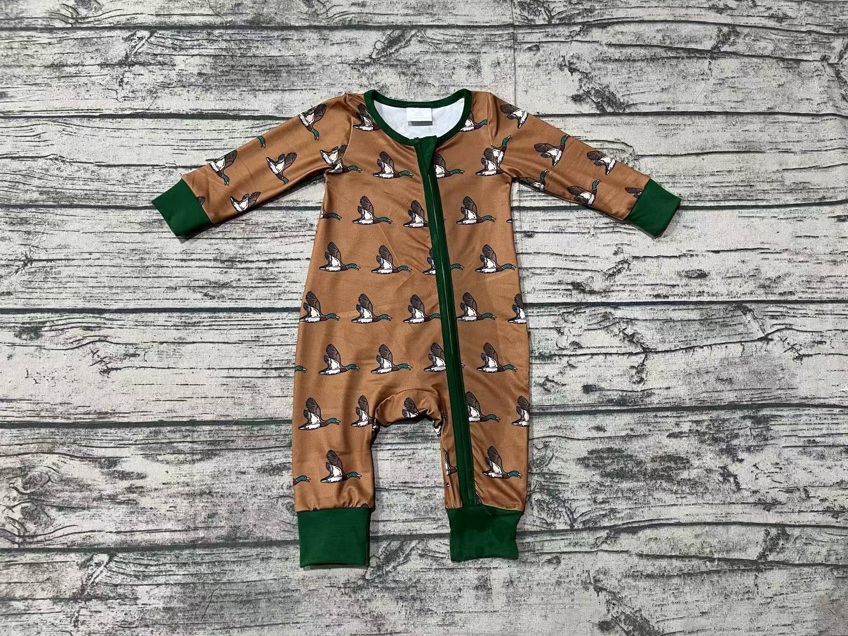 LR2154 Mallard Tan Green Zip Long Sleeve Bodysuit