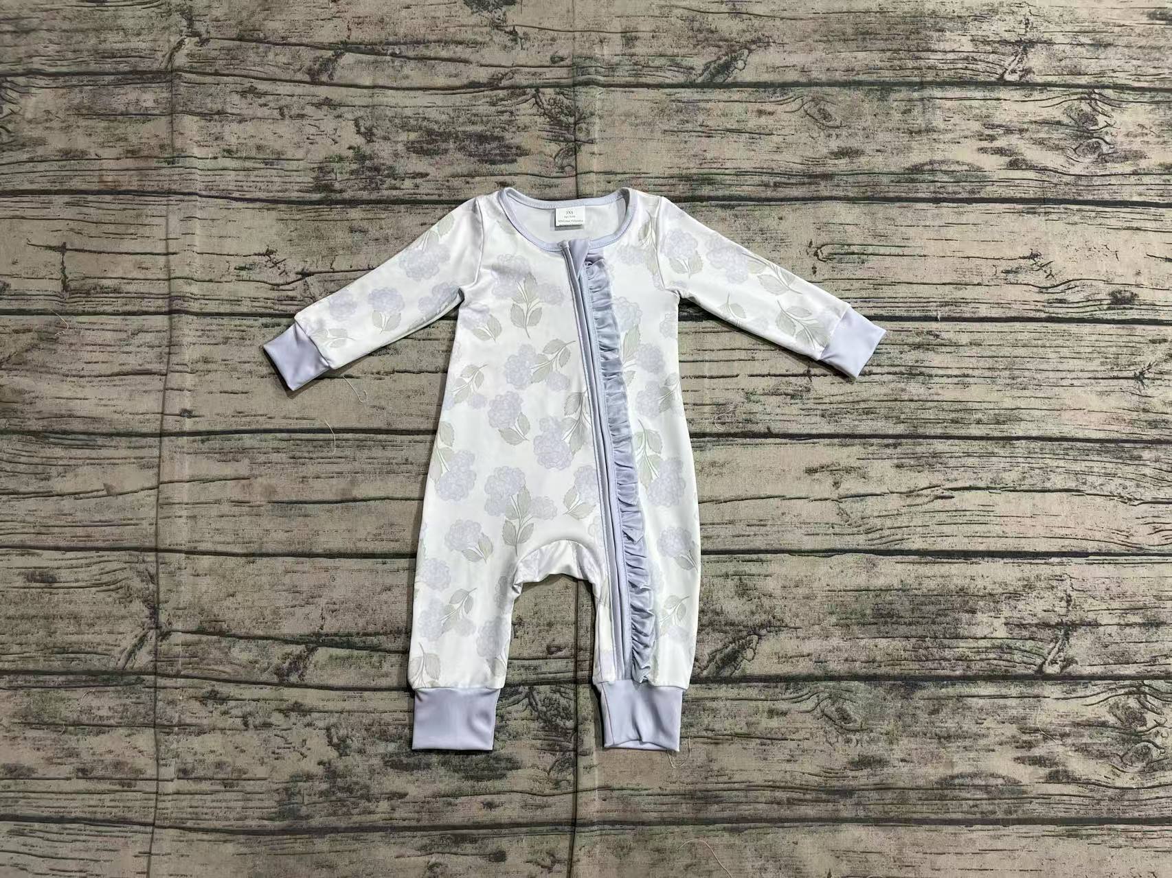 LR2157Long sleeves light blue floral baby girls zipper romper1.16