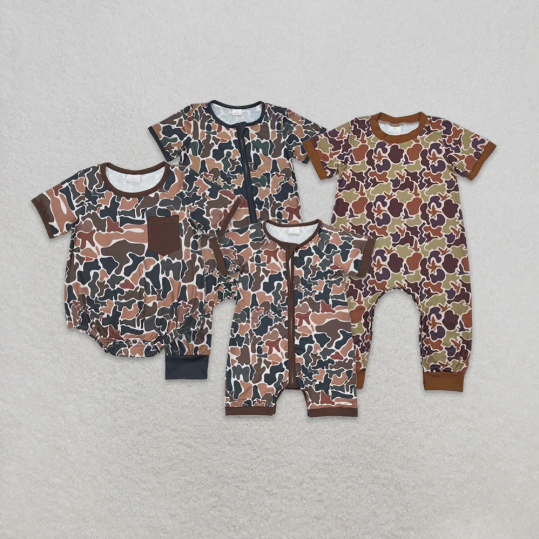 New Rts No Moq 8-9 Days By Air Arrived it Camo Baby Boy Zipper Sleepers Short Sleeves Comfortable Soft Material Infant Clothing