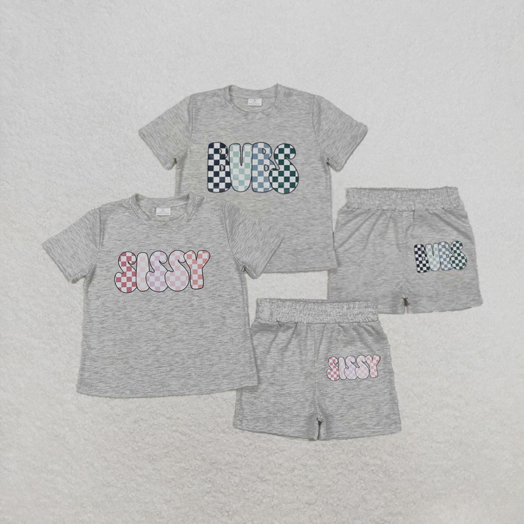 New Rts No Moq 8-9 Days By Air Arrived it Kids Grey Plaid Sissy Top Shorts Set Short Sleeves Girls Clothing Outfit
