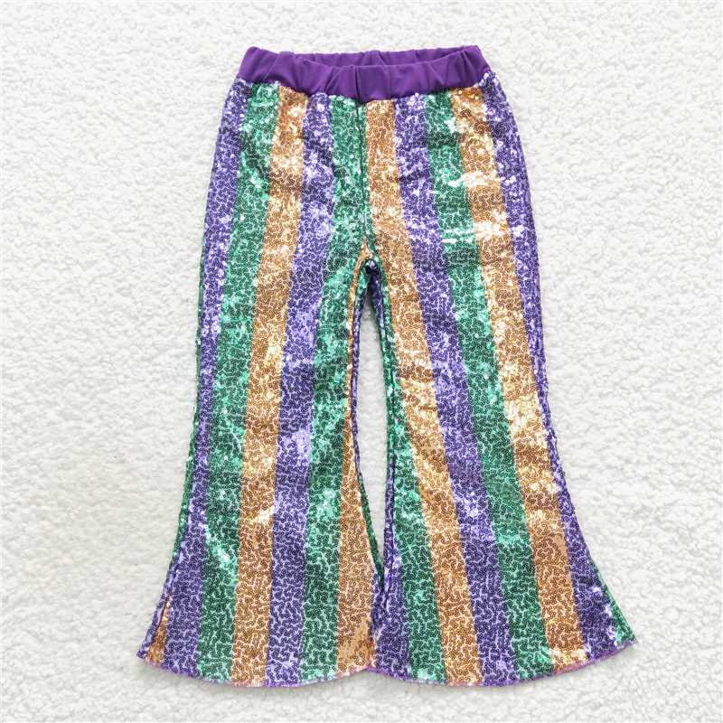 P0277 Baby Girls Purple Green Golden Sequin Bell Bottom Pants
