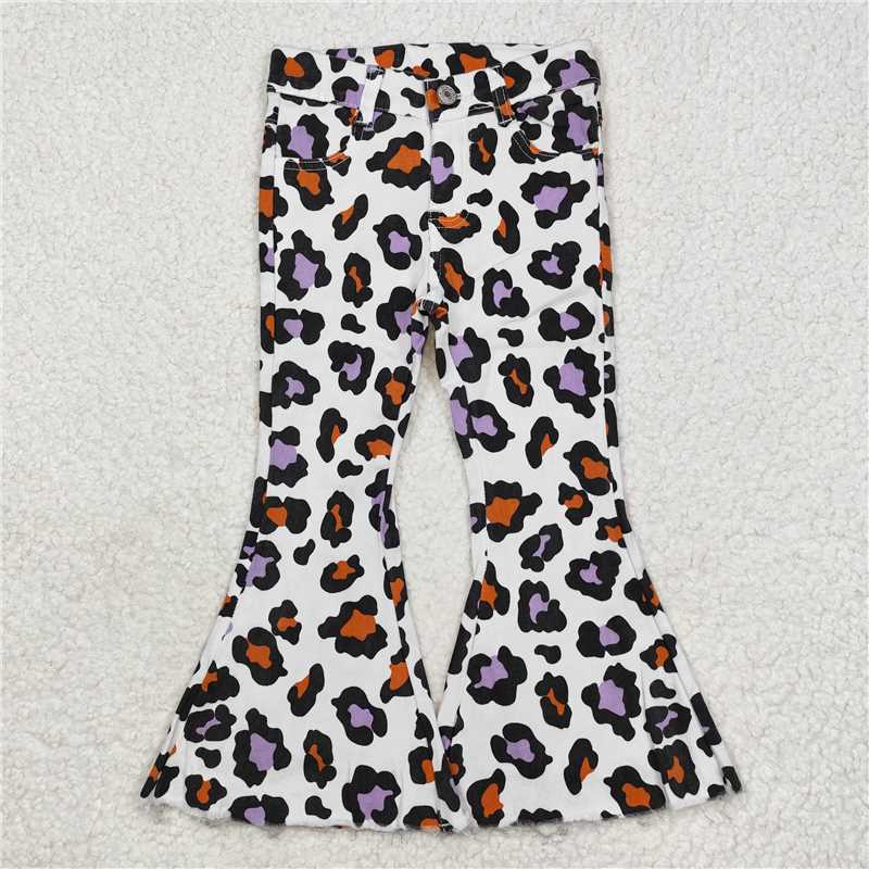 P0470 Baby Girls Halloween Leopard Bell Flare Denim Jeans Pants